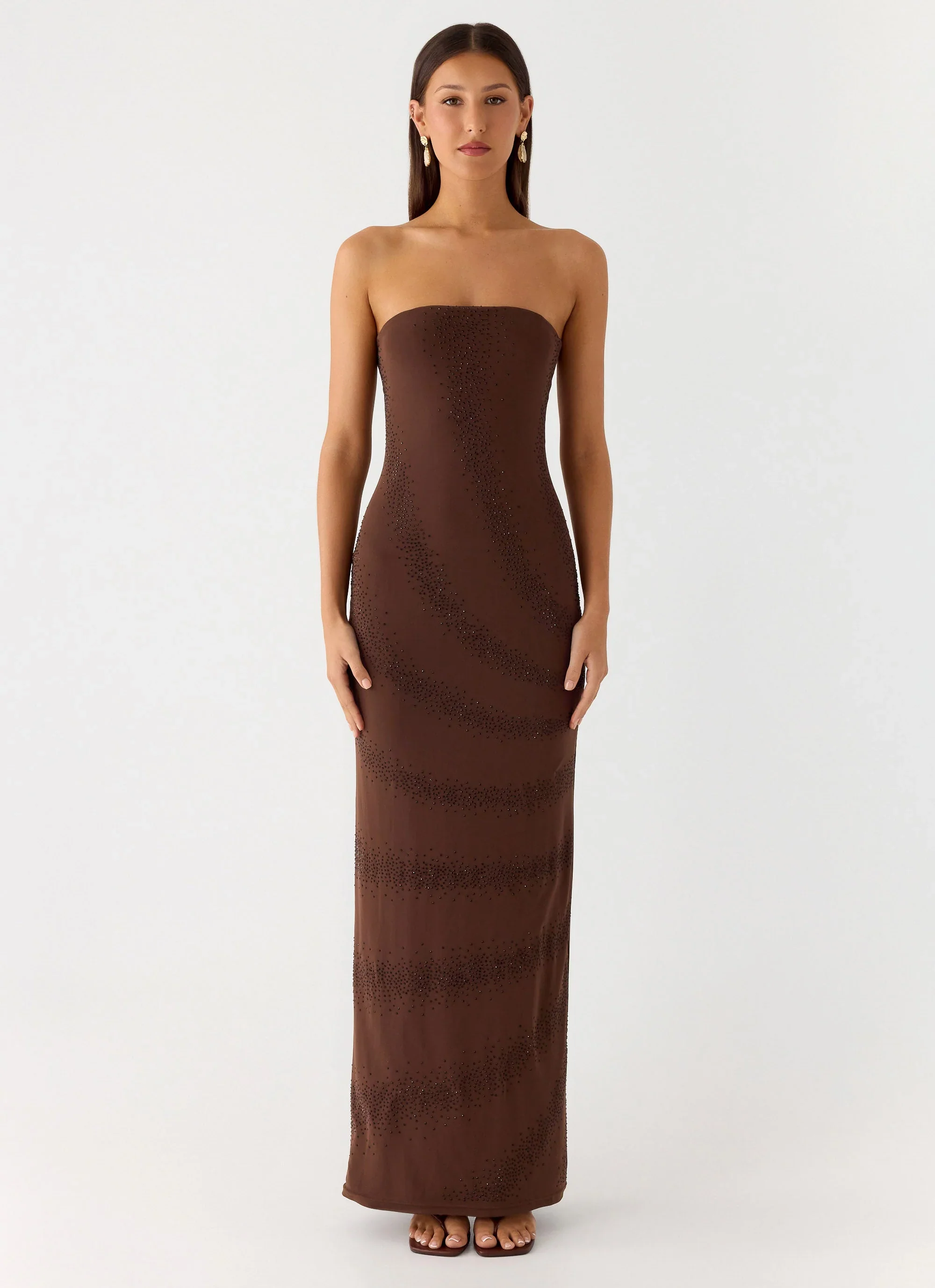 Belisse Beaded Mesh Maxi Dress - Chocolate