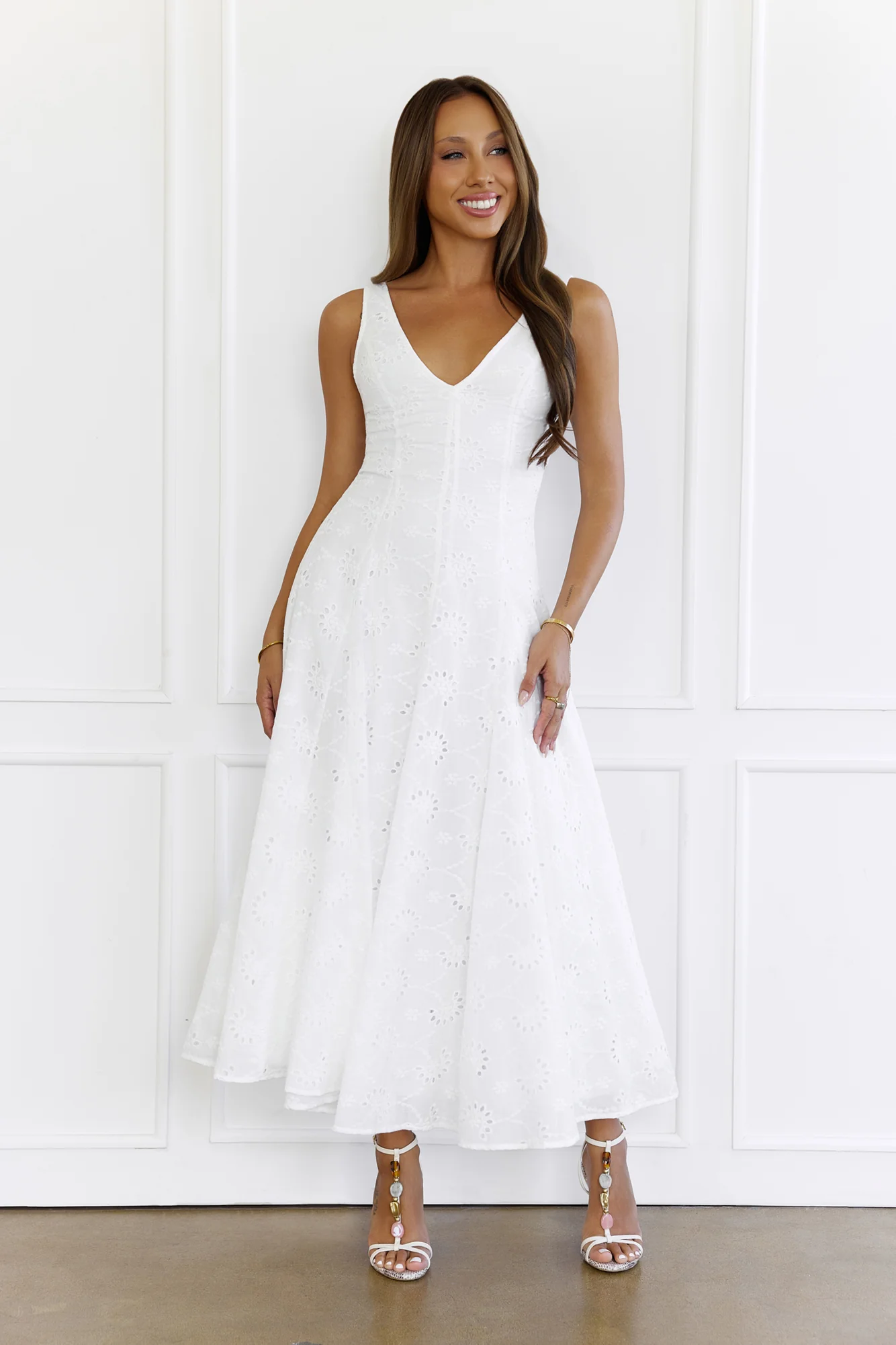 Gilded Whisper Maxi Dress White