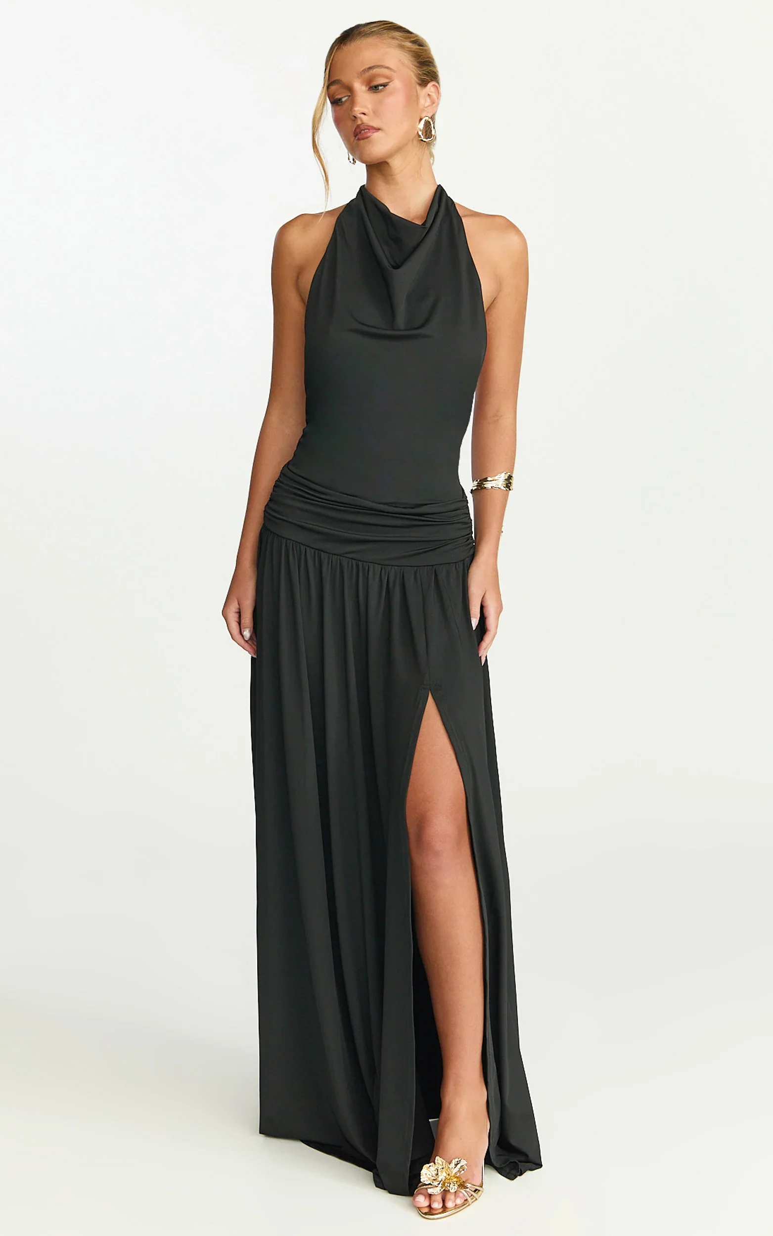Sophia Maxi Dress - Backless High Cowl Neck Jersey Dress in Black