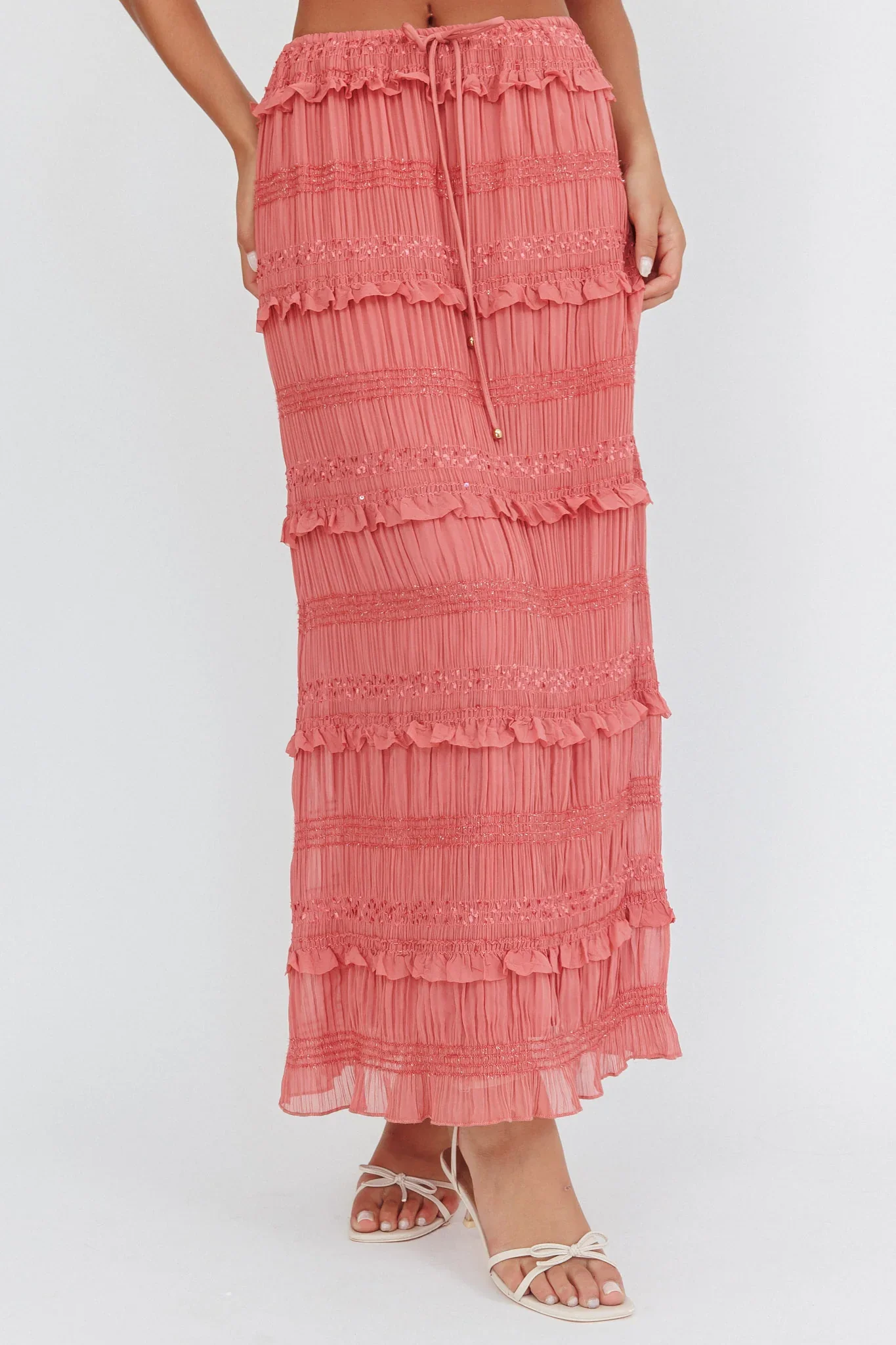 Helios Shirred Sequin Maxi Skirt Rose