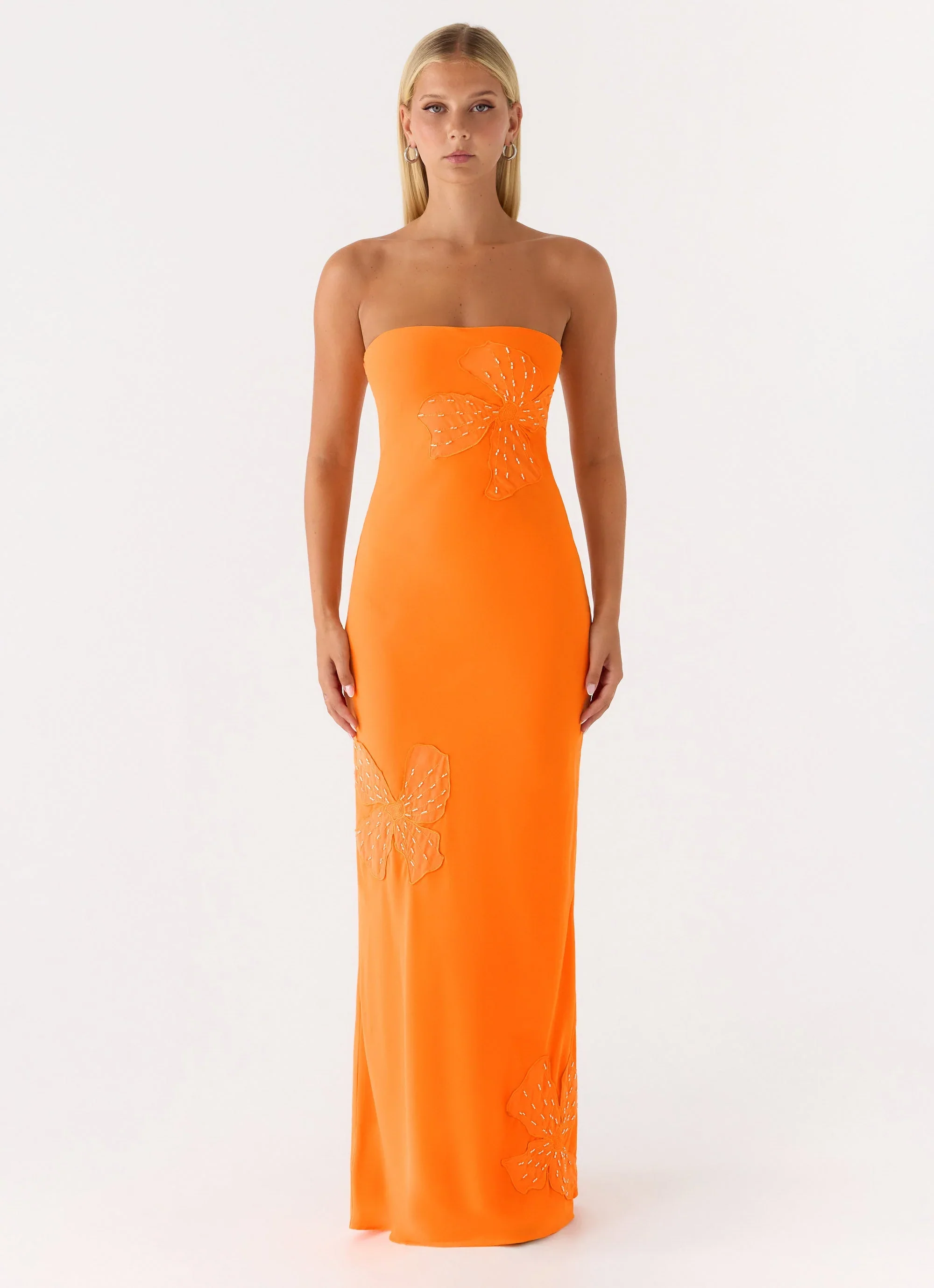 Sassafras Beaded Flower Strapless Maxi Dress - Orange