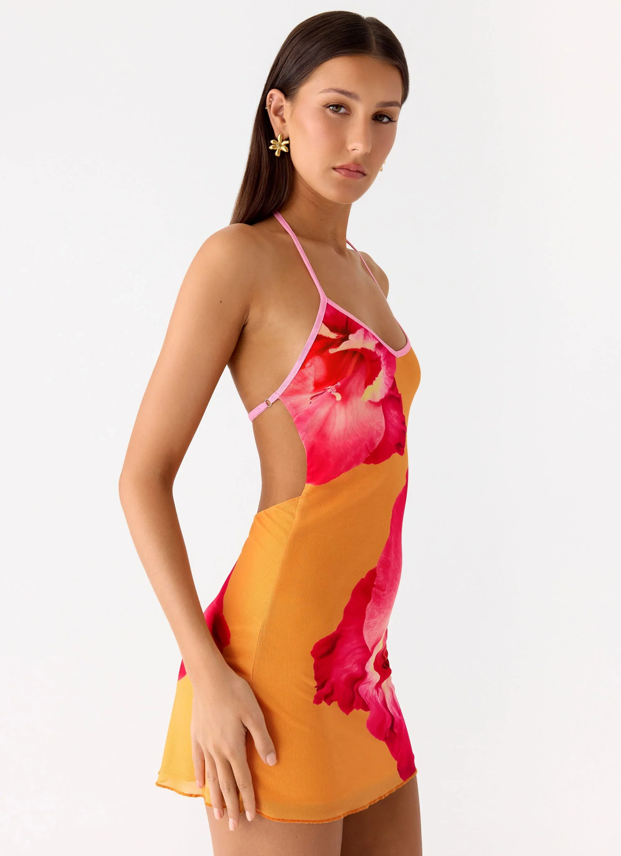 Yura Mini Dress - Orange Floral Spritz