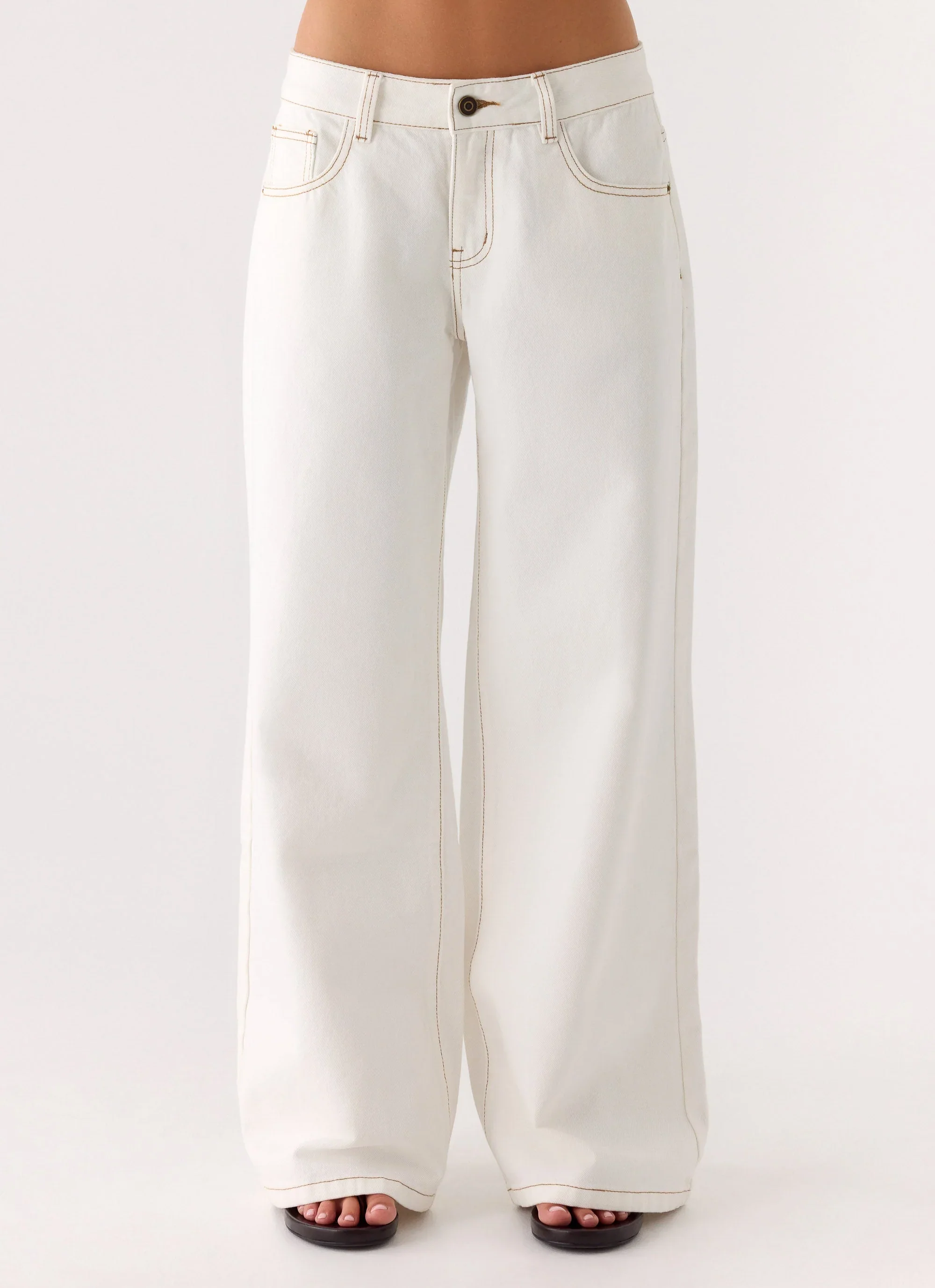 Neo Low Rise Wide Leg Denim Jeans - Ivory