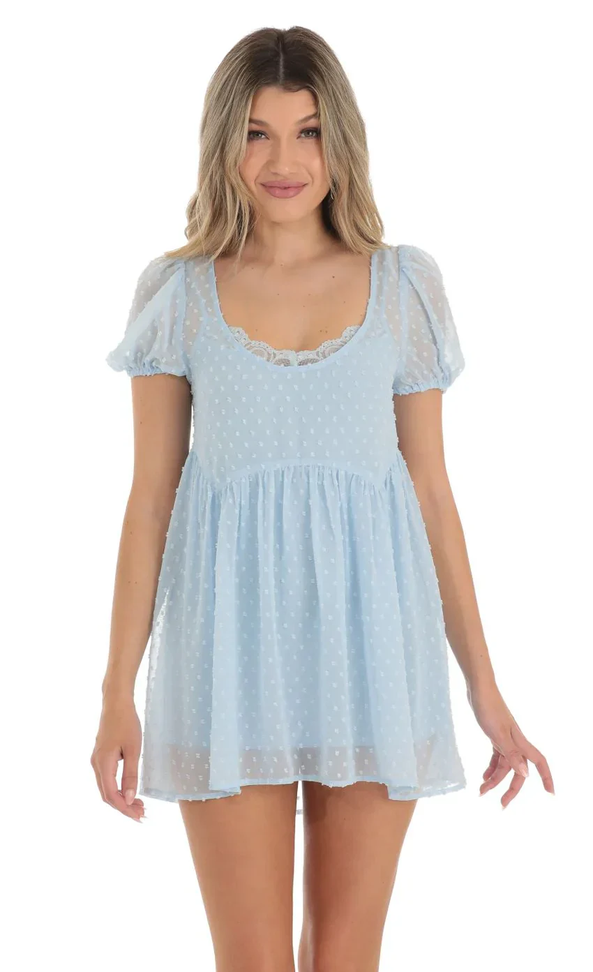 Dotted Puff Sleeve Babydoll Dress in Peach