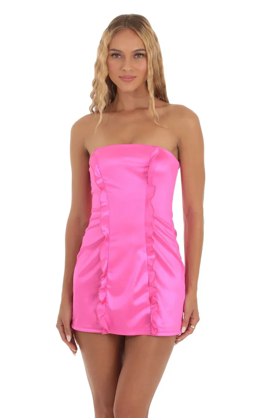 Double Ruffle Strapless Dress in Hot Pink