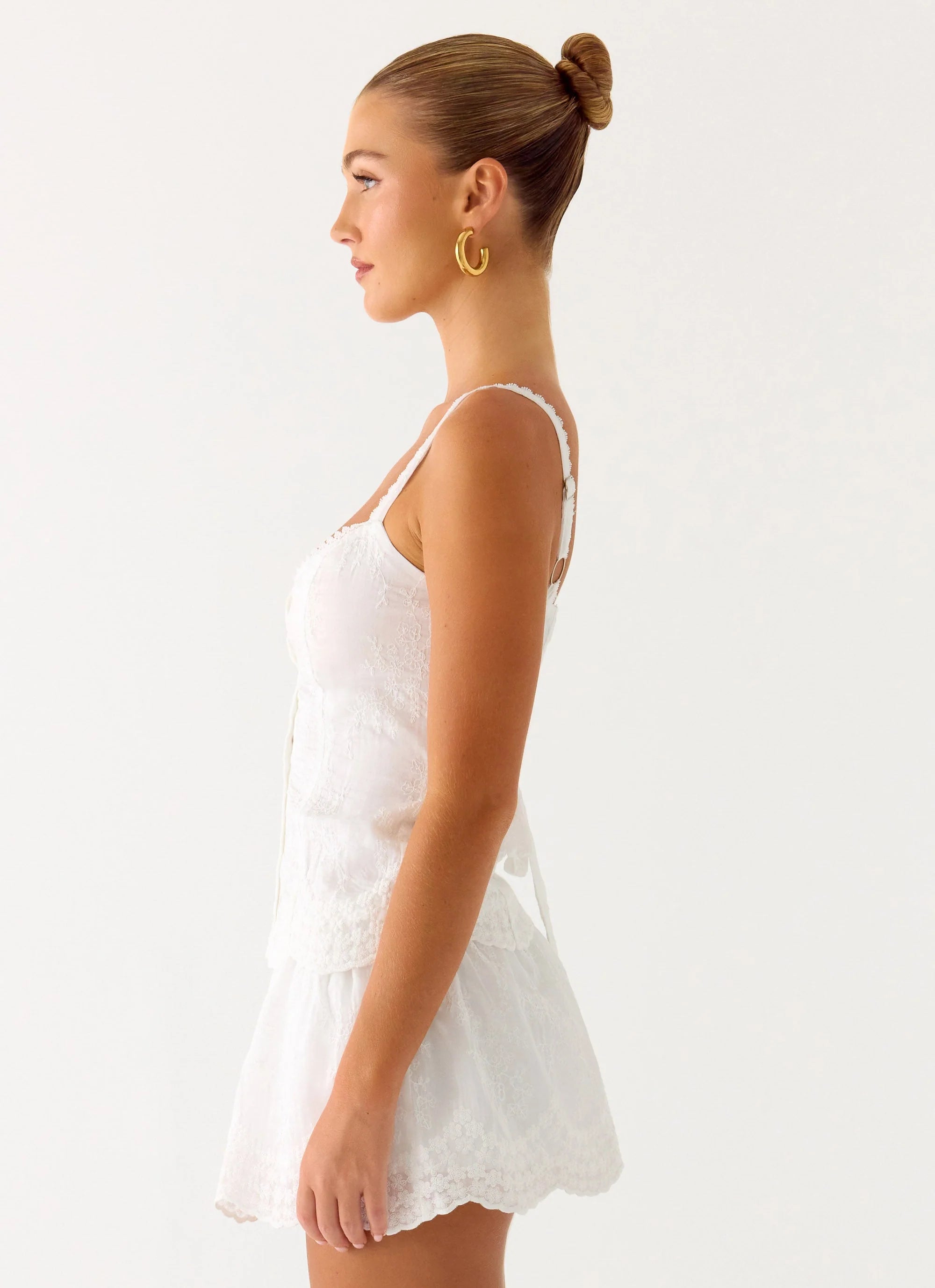 The Addictive Top is made for sun-soaked days and confident evening styling. Featuring a sweetheart neckline with thick adjustable straps, front button detail, and a corset-inspired fit, its slim silhouette is complemented by lace accents at the back for a feminine, polished finish.