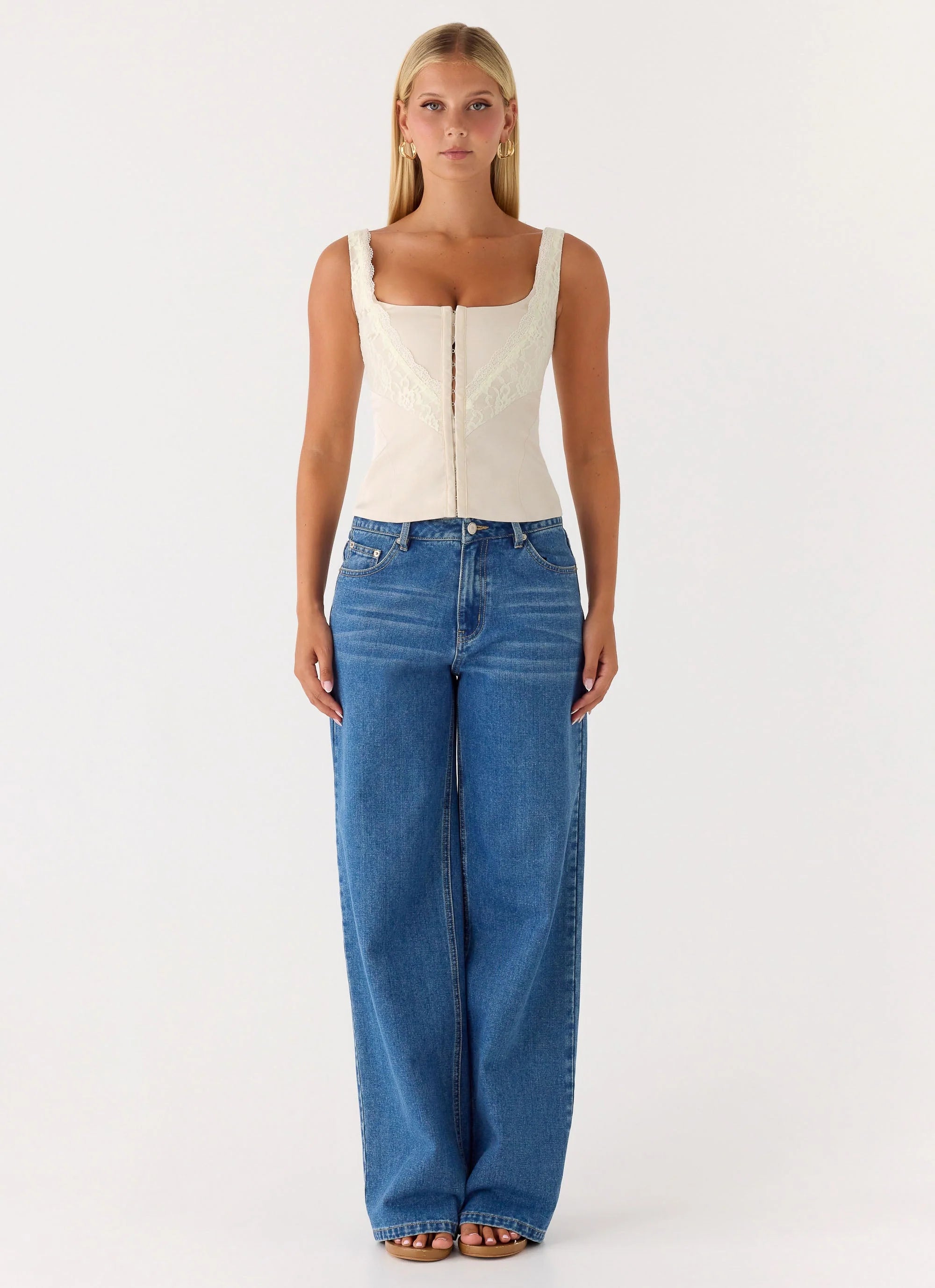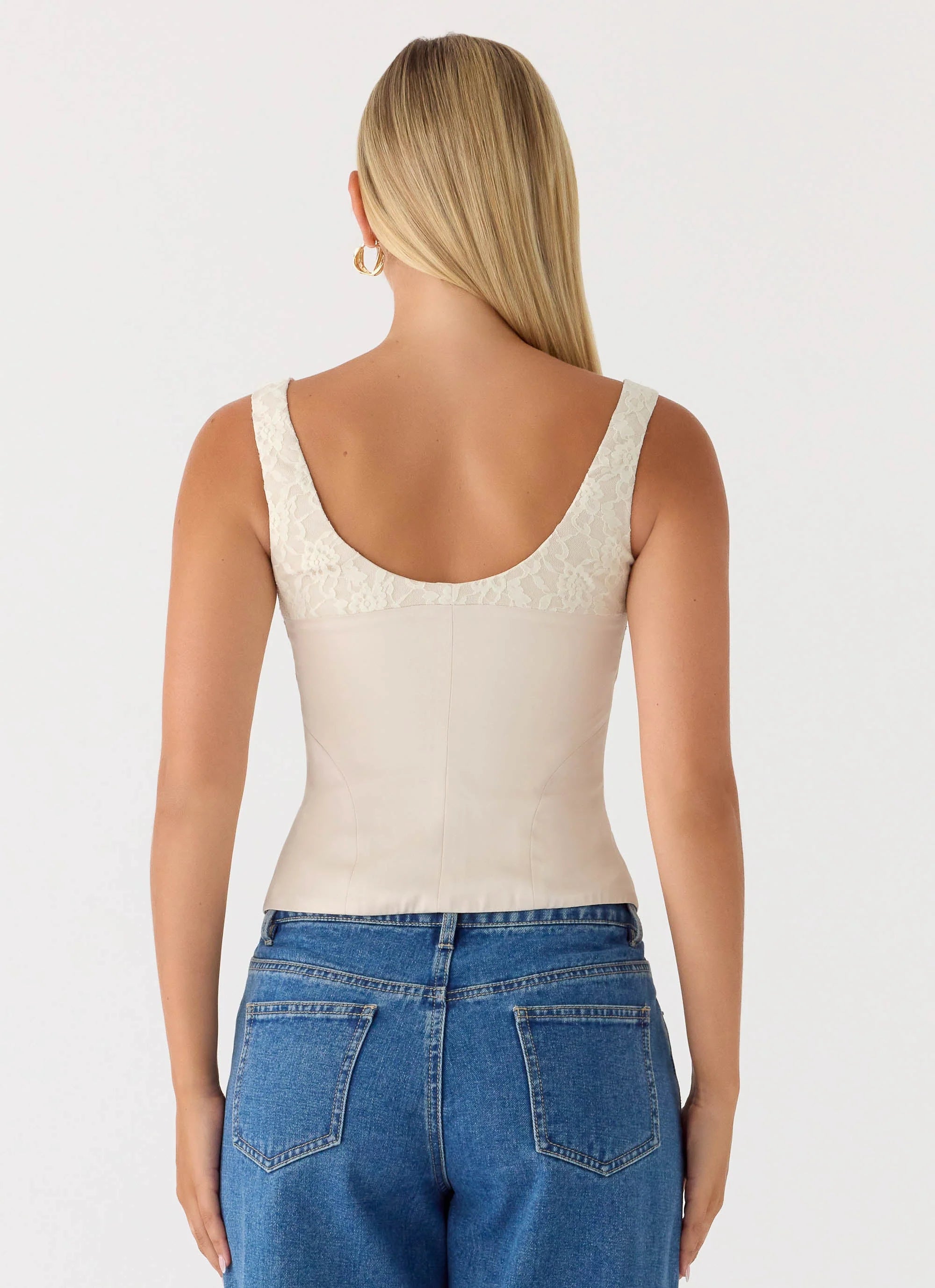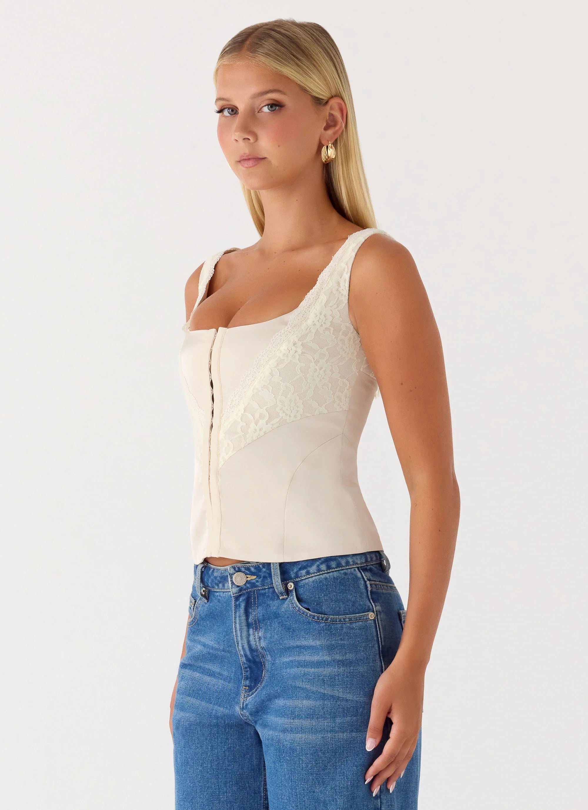 The Ailee Top is made for sunlit moments that carry effortlessly into golden evenings. Featuring a square neckline and delicate lace trim, this fitted silhouette is finished with a hook-and-eye front closure for subtle, feminine detailing. Fully lined for a smooth feel, it exudes confident, editorial elegance.