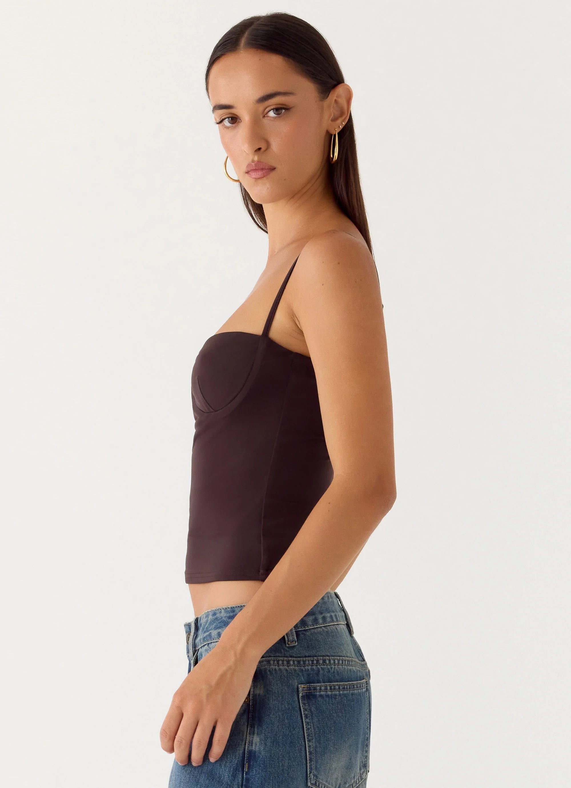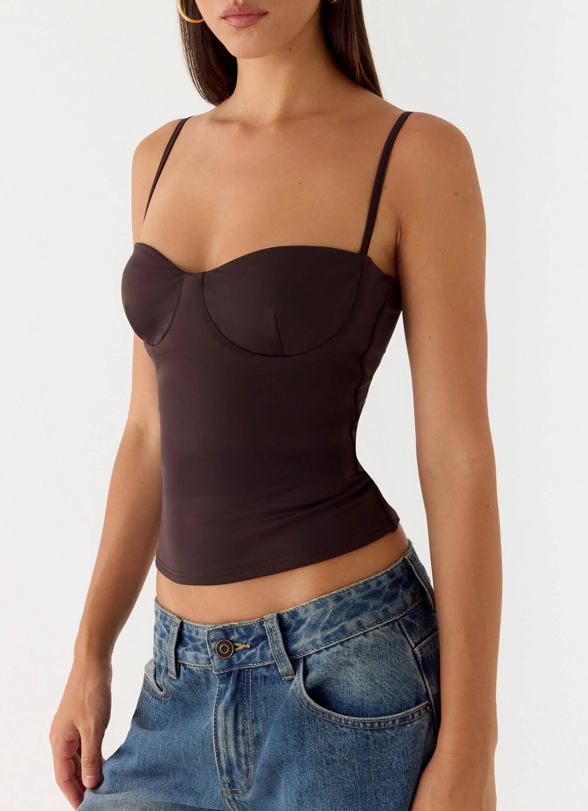 The Ame Underwire Top is designed for confident, elevated styling with a structured, corset-inspired silhouette. Featuring bustier detailing and adjustable straps with a back hook and bar, this fully lined top offers shape and support while maintaining a sleek, modern edge. Effortlessly chic, it’s made to stand out on its own.