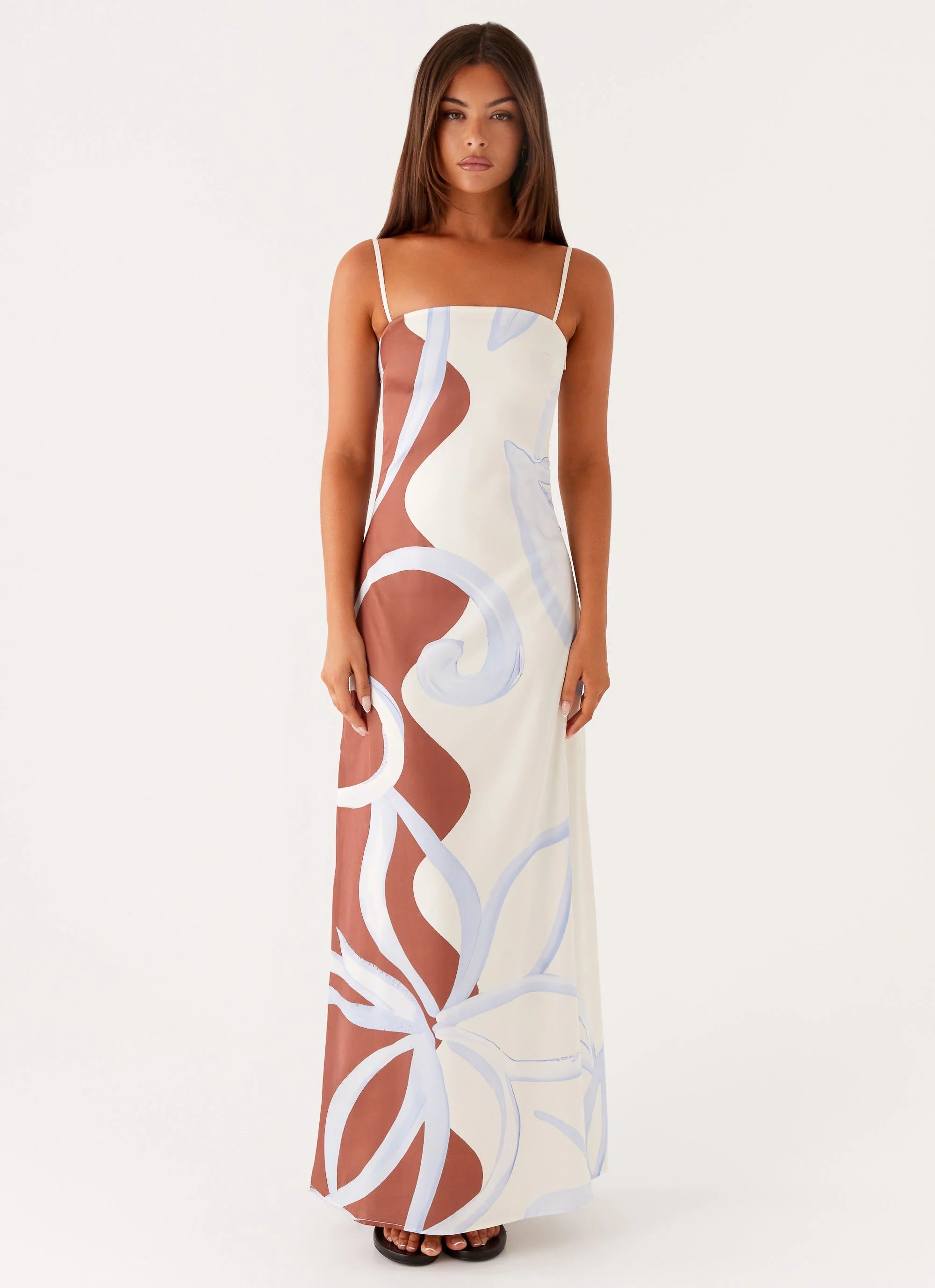 The Aster Bloom Maxi Dress is a luxurious piece crafted from satin, featuring adjustable straps and a side seam invisible zipper. The exclusive Iris Petal print adds a personal touch, making this dress perfect for both daytime events and glamorous evening affairs.