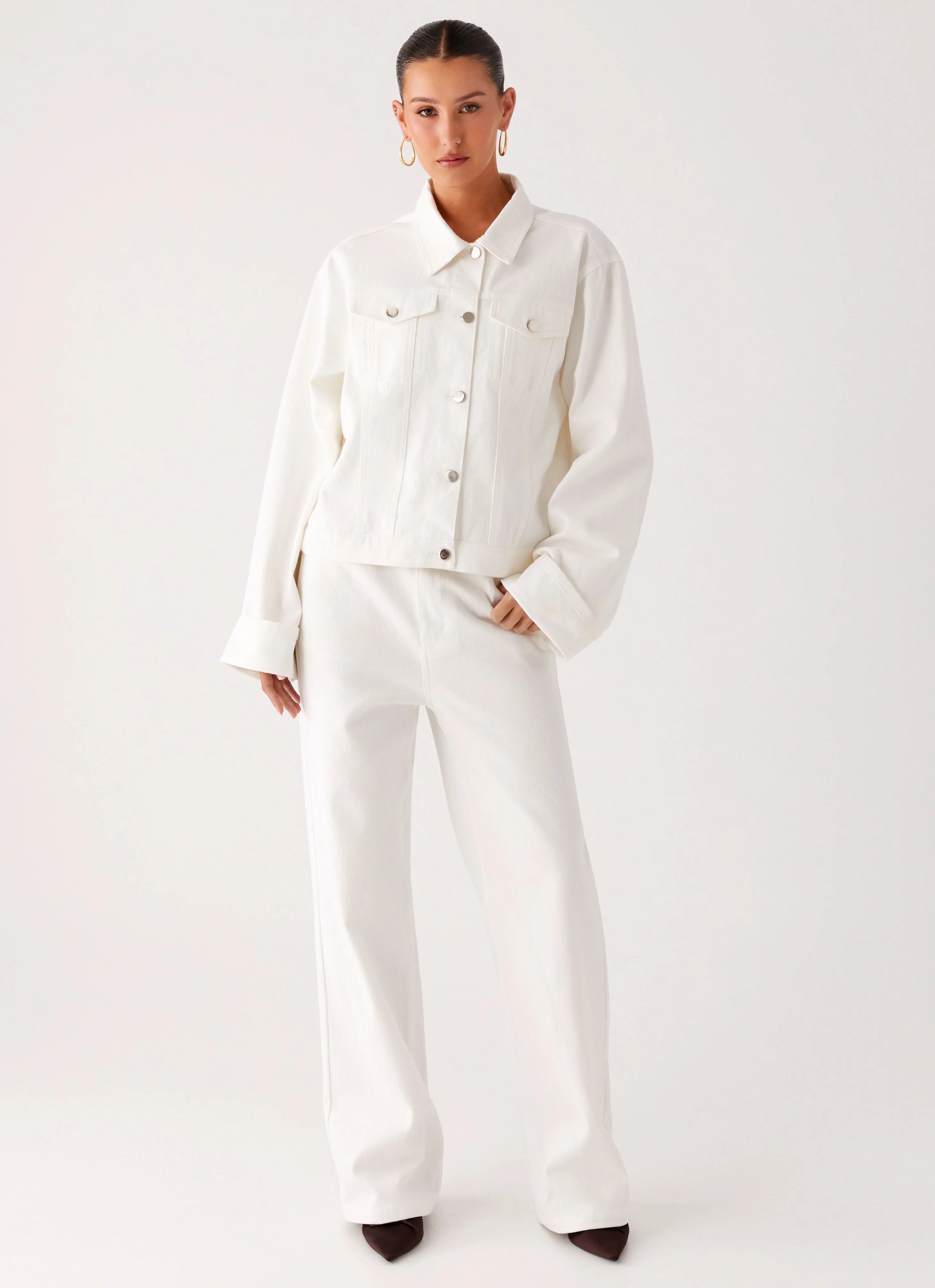 The Back Again Oversized Denim Jacket is your go-to layer for cool nights and downtown vibes. It features a collared neckline, front flap pockets, and folded cuffs. With metal button closures and an oversized fit, this unlined jacket adds effortless edge to any look.