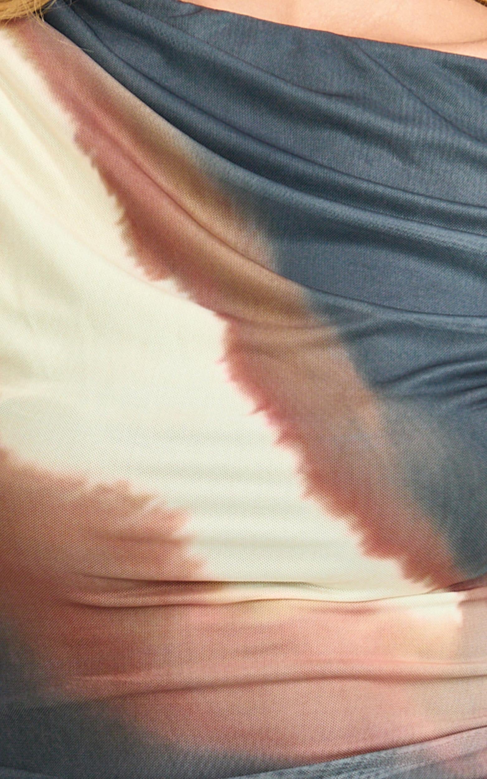Meet the Bella Mini Dress – Mesh Off Shoulder Dress In Rust Print. Its body-skimming fit and sculpted sleeves create a balanced shape that celebrates every body. The brown palette slots effortlessly into your wardrobe and plays nicely with your favourite Dresses in neutral or metallic tones.