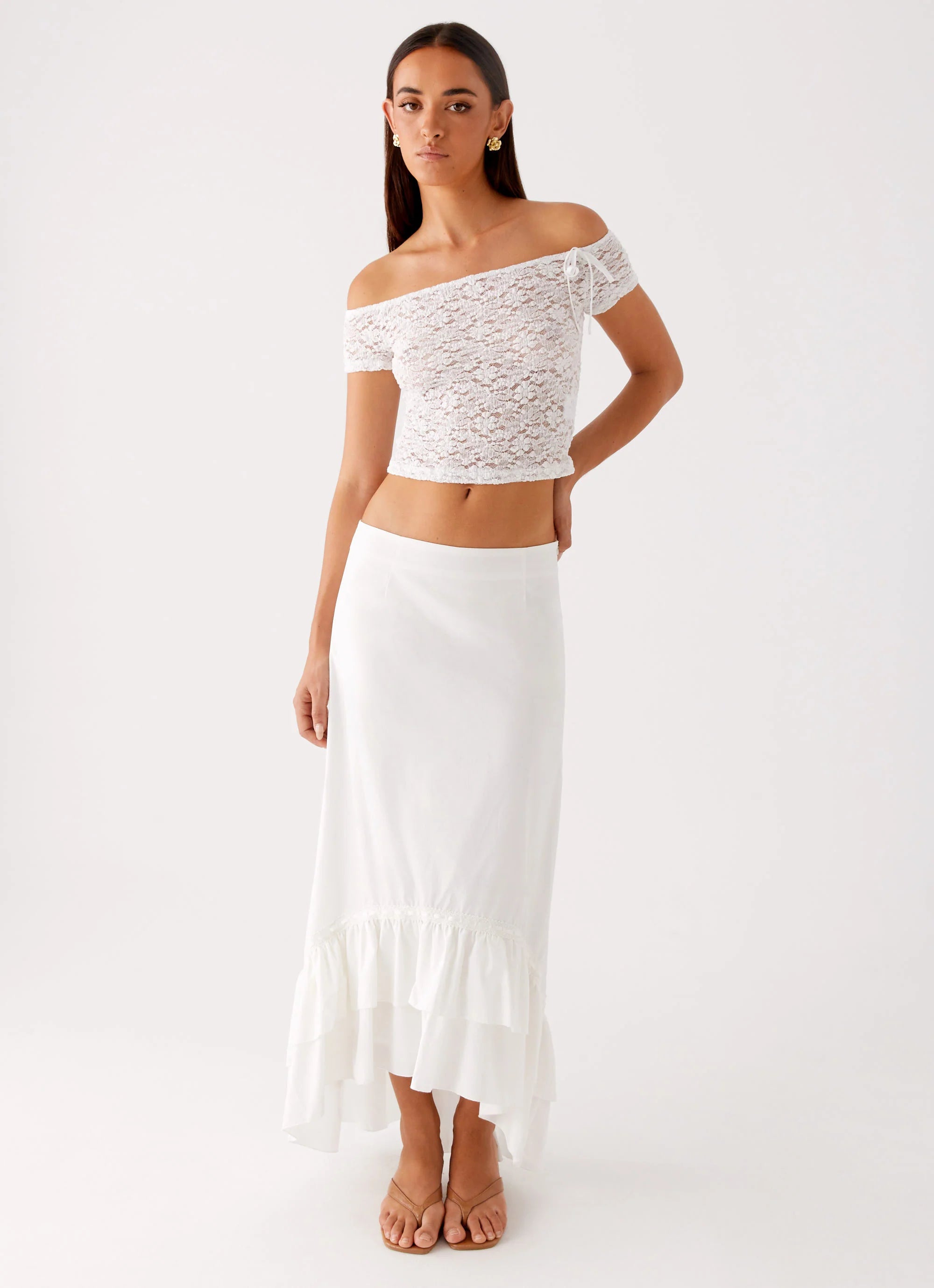 The Billie Lace Top is sheer temptation. Designed with an off-the-shoulder neckline and crafted from unlined lace for a delicate, barely-there feel, it's the perfect blend of romance and edge