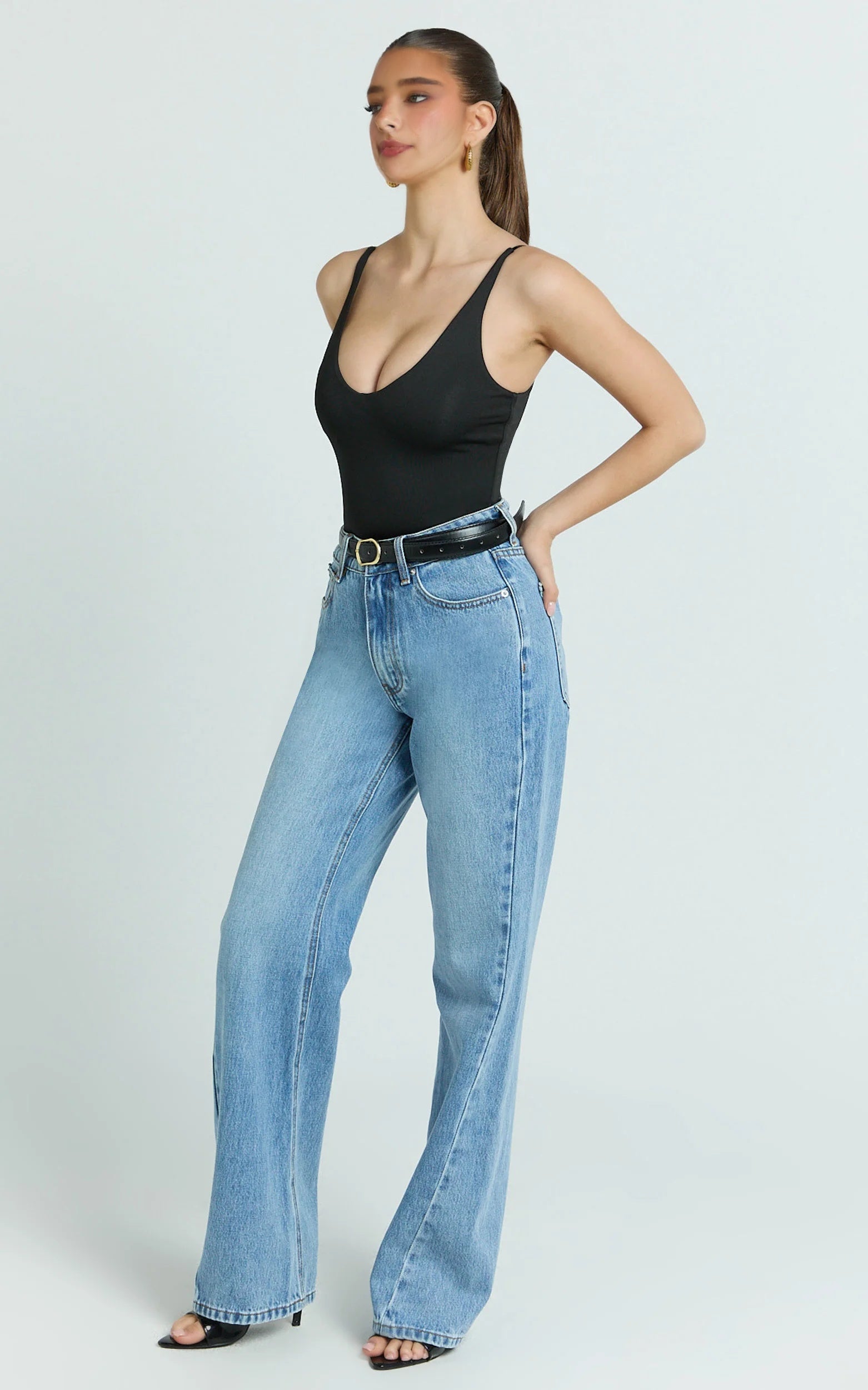 Pair this bodysuit with wide-leg trousers and closed-toe shoes for an elegant look, or add statement accessories over the plunging neckline for a maximalist style. This black V-neck bodysuit is a versatile essential that you'll reach for again and again, whether it's for work, a night out, brunch, or a bar visit. It's always stylish.
