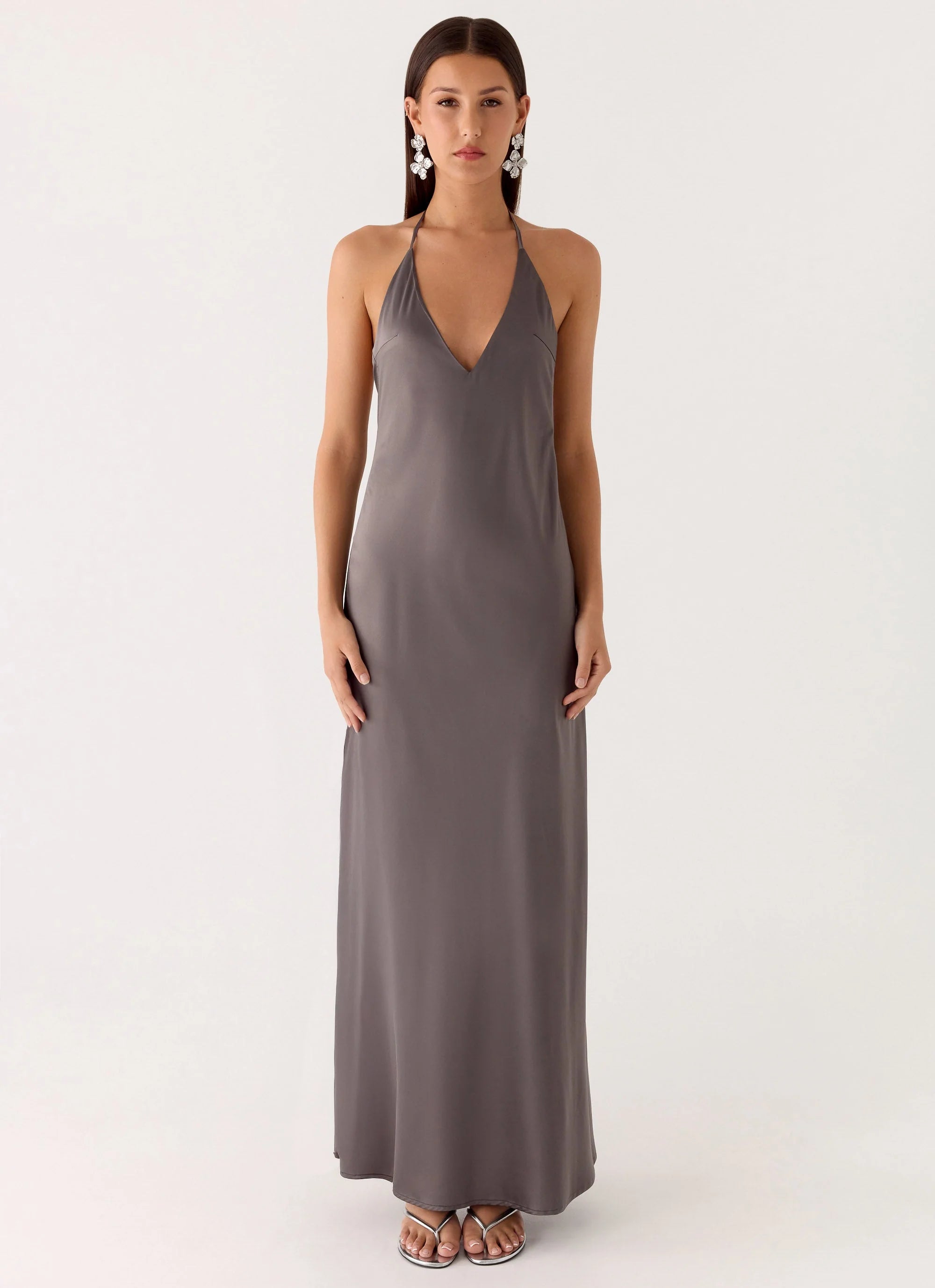 The Bondi Heat Maxi Dress is designed for nights that shimmer from sunset to city lights. With a halter neck, V neckline, and flowing satin fabric, this fully lined slip-on dress creates a flattering silhouette perfect for beachside evenings or rooftop cocktails.