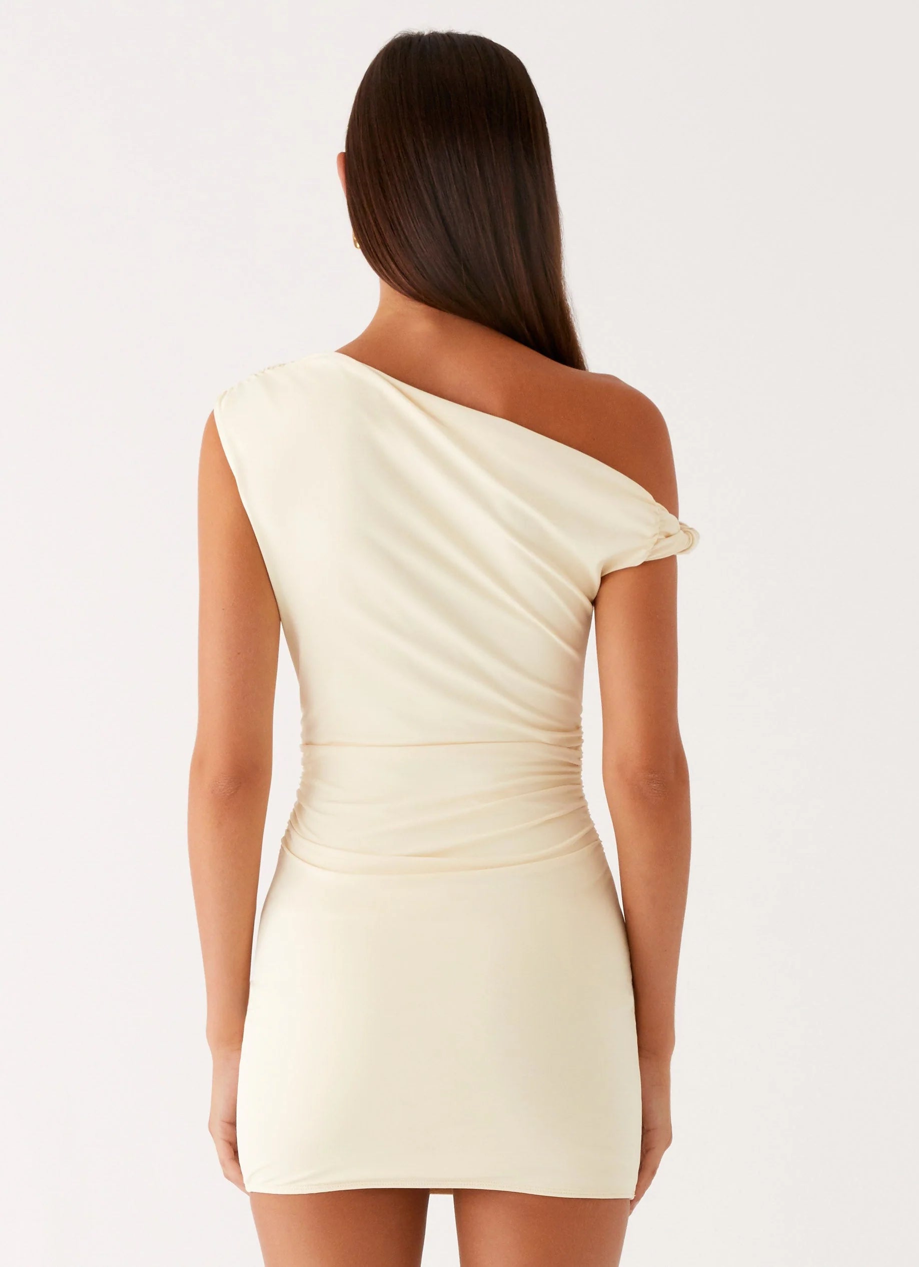 The Byron Mini Dress is the ultimate plus-one for any night out. Featuring an asymmetrical neckline with a side-twisted strap detail, this style adds a unique twist to a classic silhouette. The ruched bodice flatters the figure, while the stretch jersey fabric and self-lined design ensure a smooth, comfortable fit.