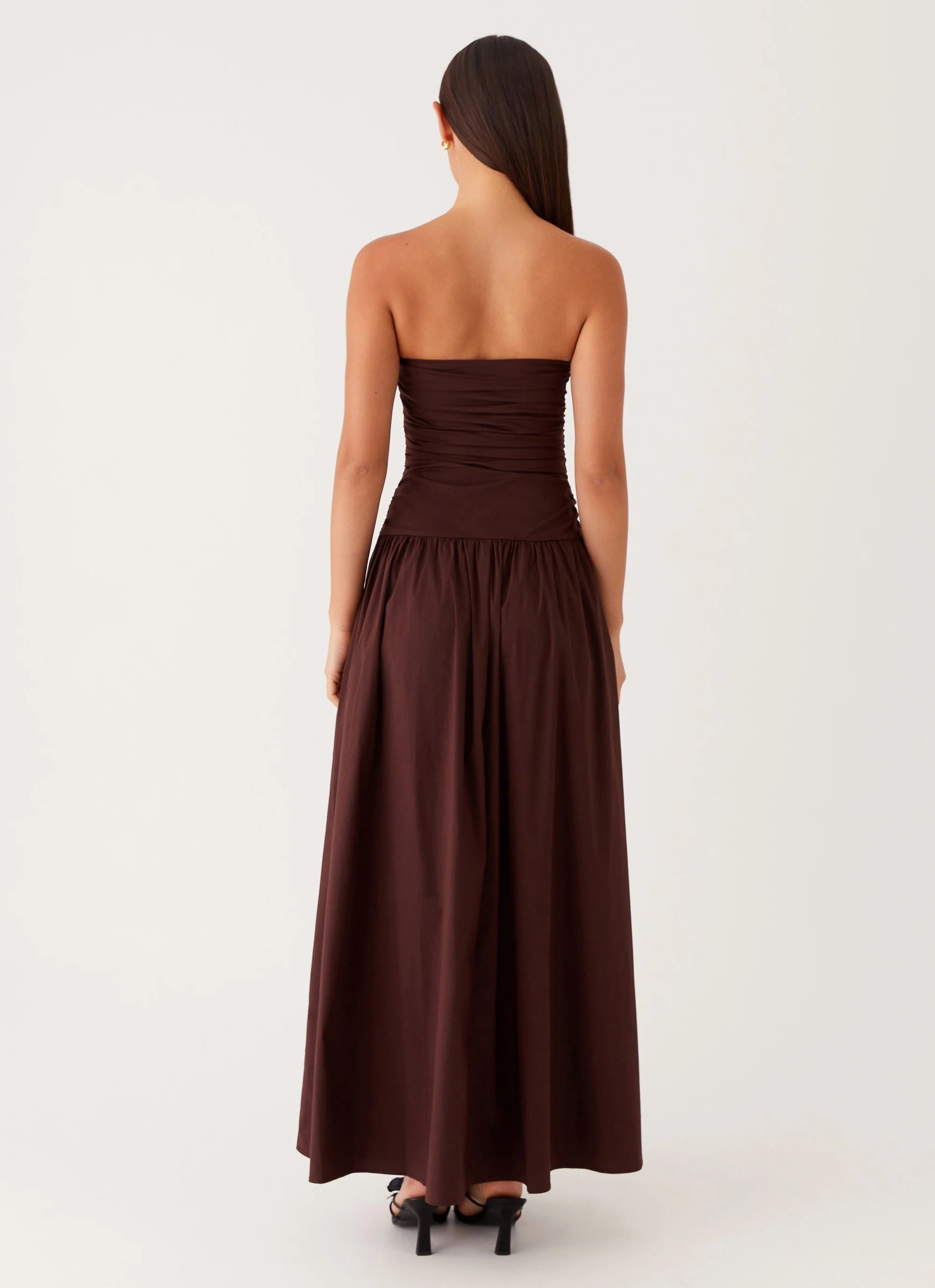 Introducing the Carmel Maxi Dress in Ivory. Featuring a strapless neckline and delicately ruched bodice detailing, this dress exudes timeless sophistication and allure.