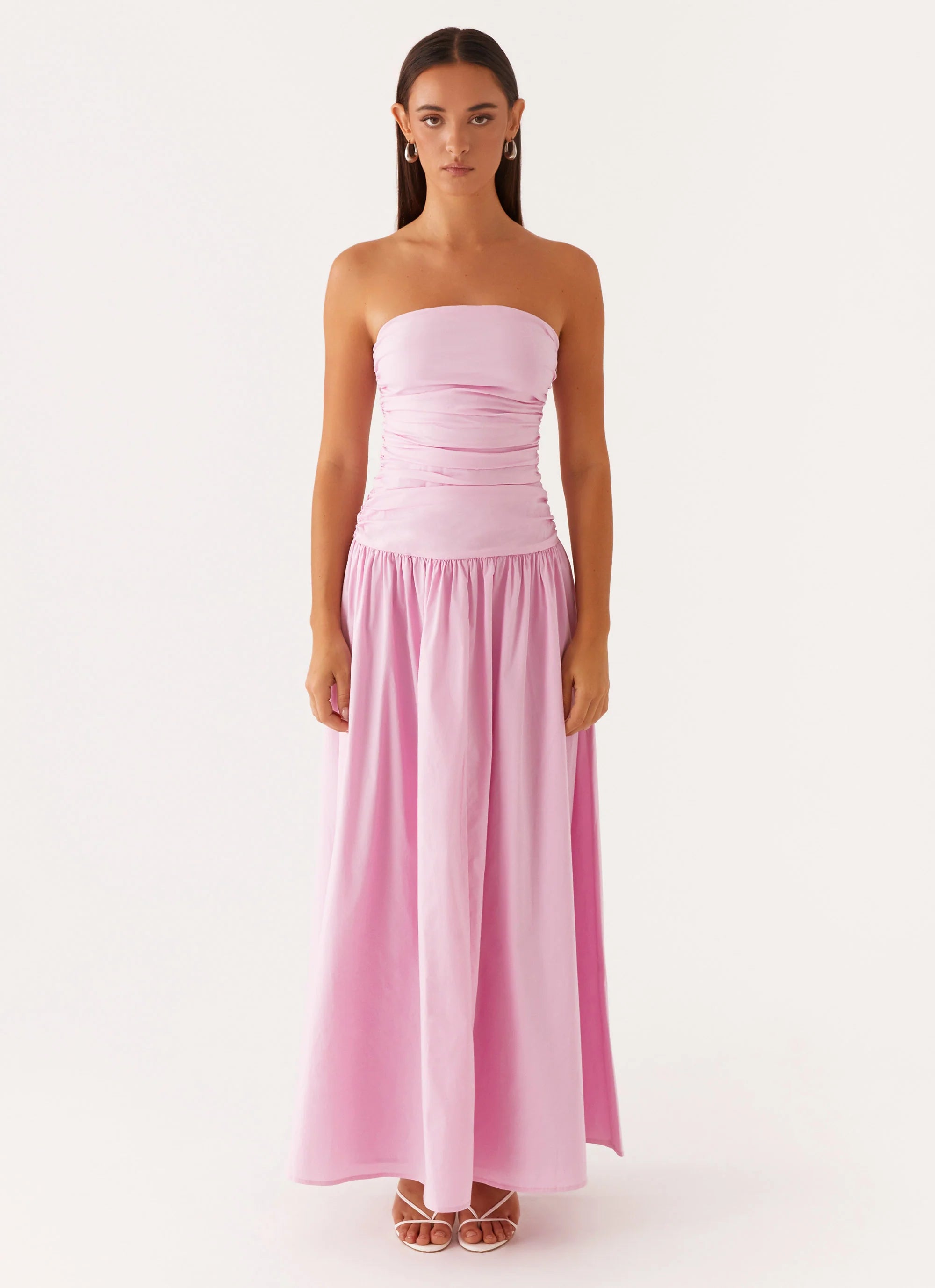 The Carmel Maxi Dress is the epitome of sleek, effortless elegance. Featuring ruched sides that contour your shape, it creates a flattering, figure-enhancing silhouette. The dropped waist adds a relaxed, flowing feel, while silicone taping ensures a secure fit throughout the night.