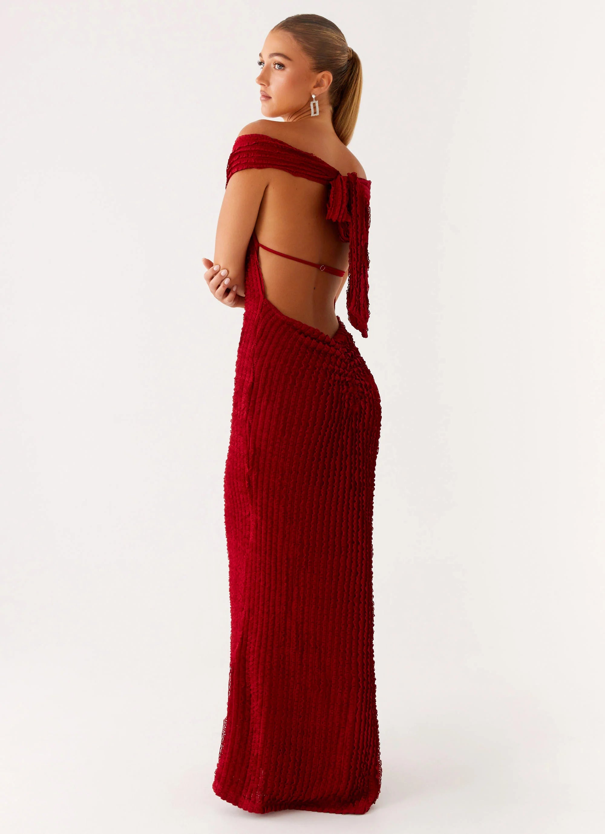 The Chantelle Maxi Dress is pure, untamed elegance. With its off-shoulder design, semi-sheer fabric, and stretch mesh, it drapes your silhouette in sultry sophistication. Made for those who crave golden skies and balmy nights, it’s the perfect piece to shine under the city lights.