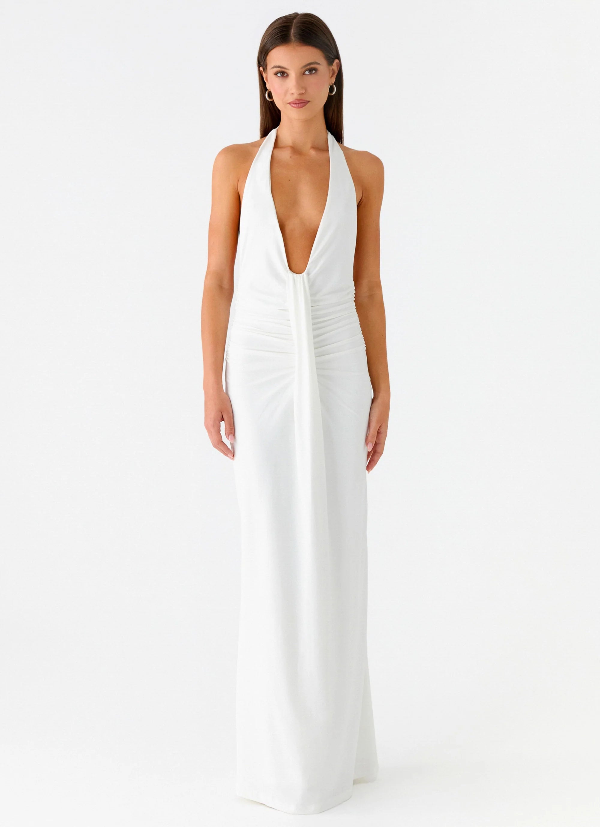 The Cheyenne Halter Neck Maxi Dress is made for sun-soaked evenings and golden hour moments. Featuring a deep V neckline and thick adjustable straps, its bodycon silhouette with side ruching sculpts a flattering shape, while the low back adds subtle allure. Fully self-lined, this maxi dress moves effortlessly from beachside drinks to after-dark adventures.