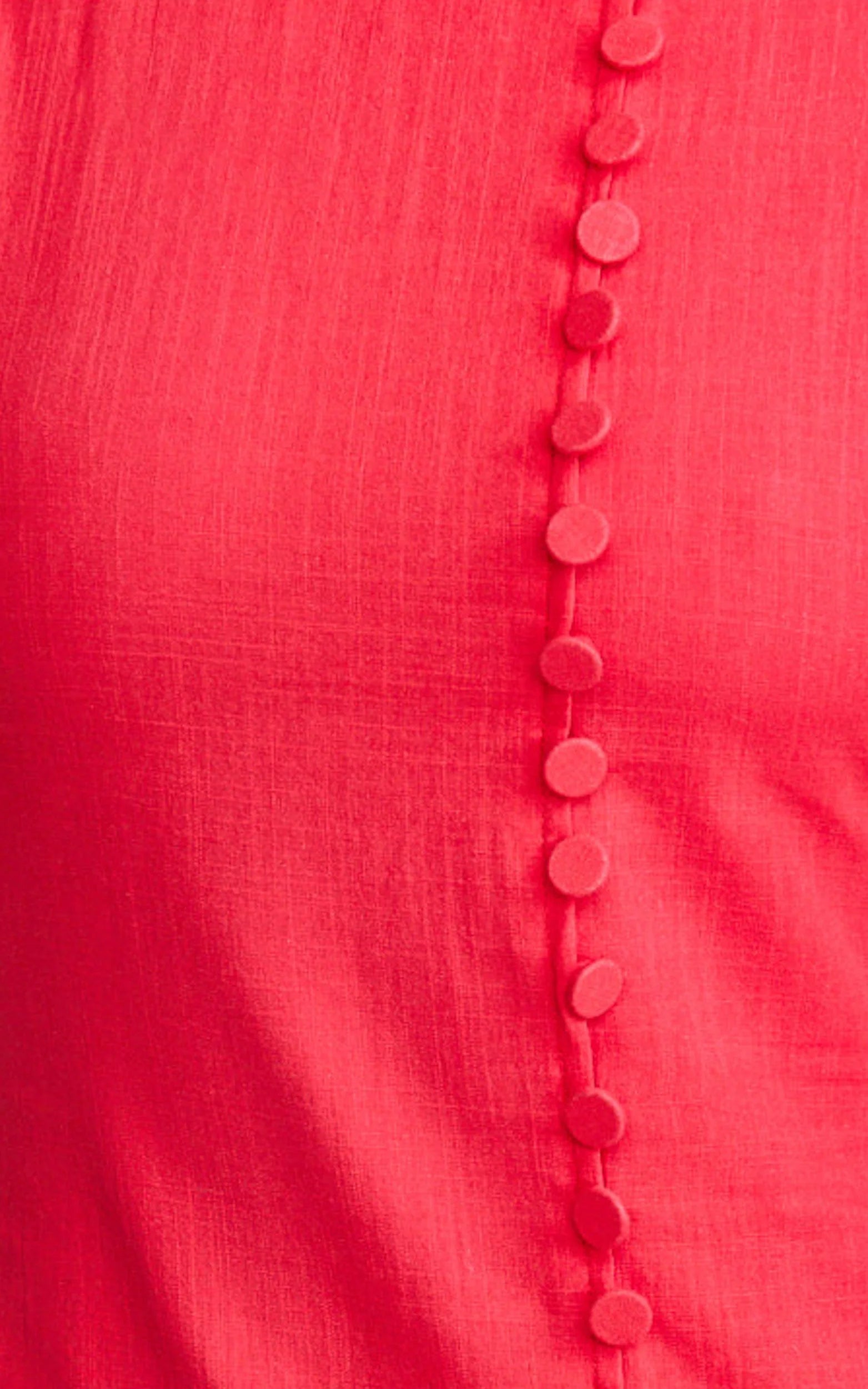 Cortez Mini Dress - High Neck Button Down Dress In Red is your go-to when you want easy styling, strong impact and zero fuss. Classic, chic and made for compliments, because everyone’s invited to shine.
