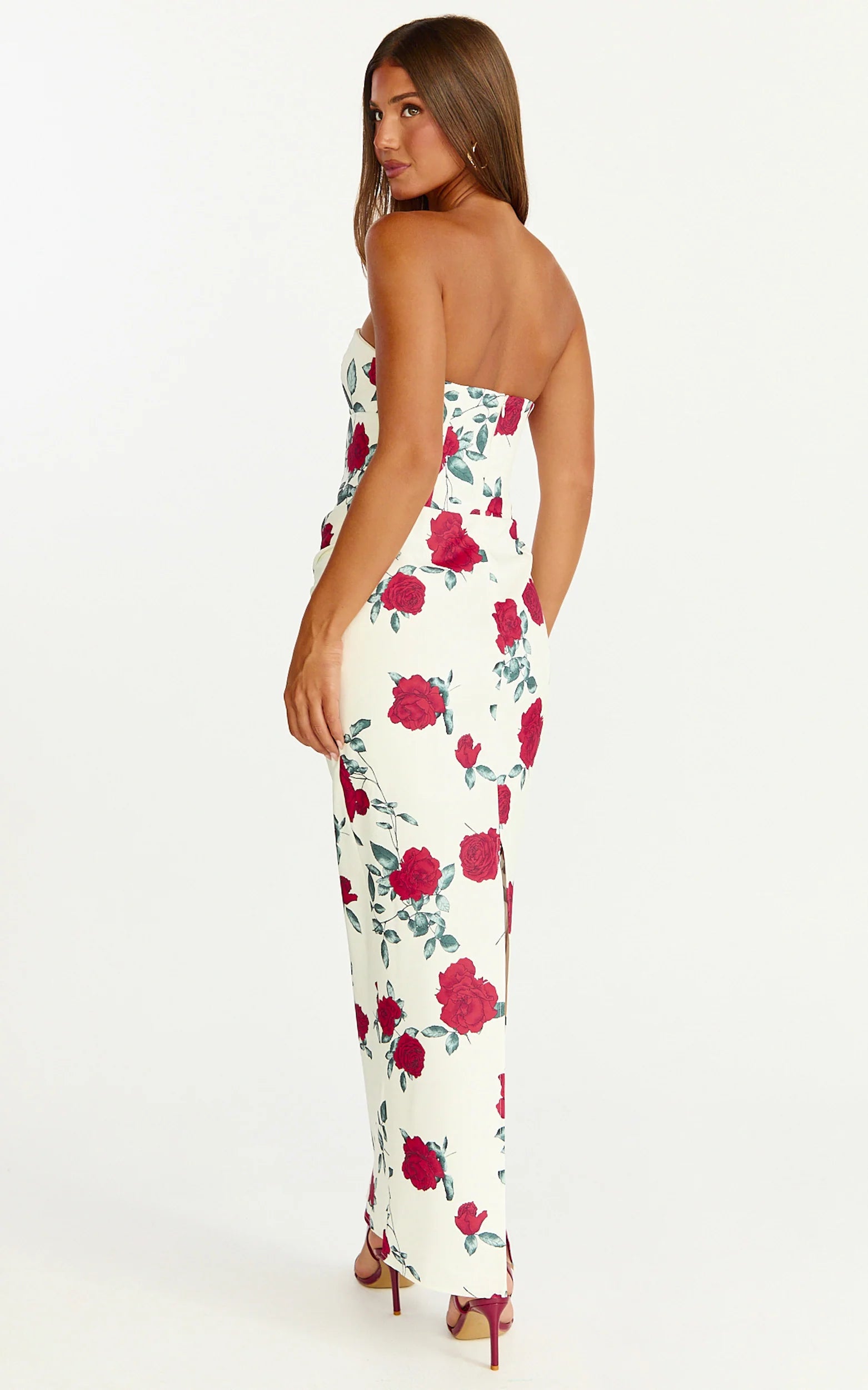 Dahlia Midi Dress shines from dinner plans to dance floors, just add your favourite heels and a clutch to let the print lead. The strapless neckline frames your collarbones beautifully, and the streamlined fit keeps everything polished and party-ready.