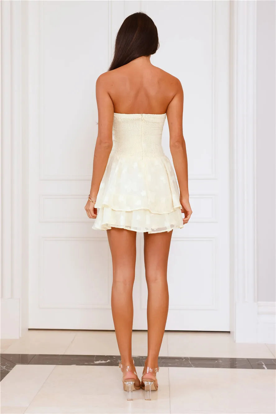A flirty, fun style perfect for the summertime. The Daisy Dreams Strapless Mini Dress features a tiered frill skirt, a tie-up neckline and an inner grip to have you secure all day long. Style with sandals!