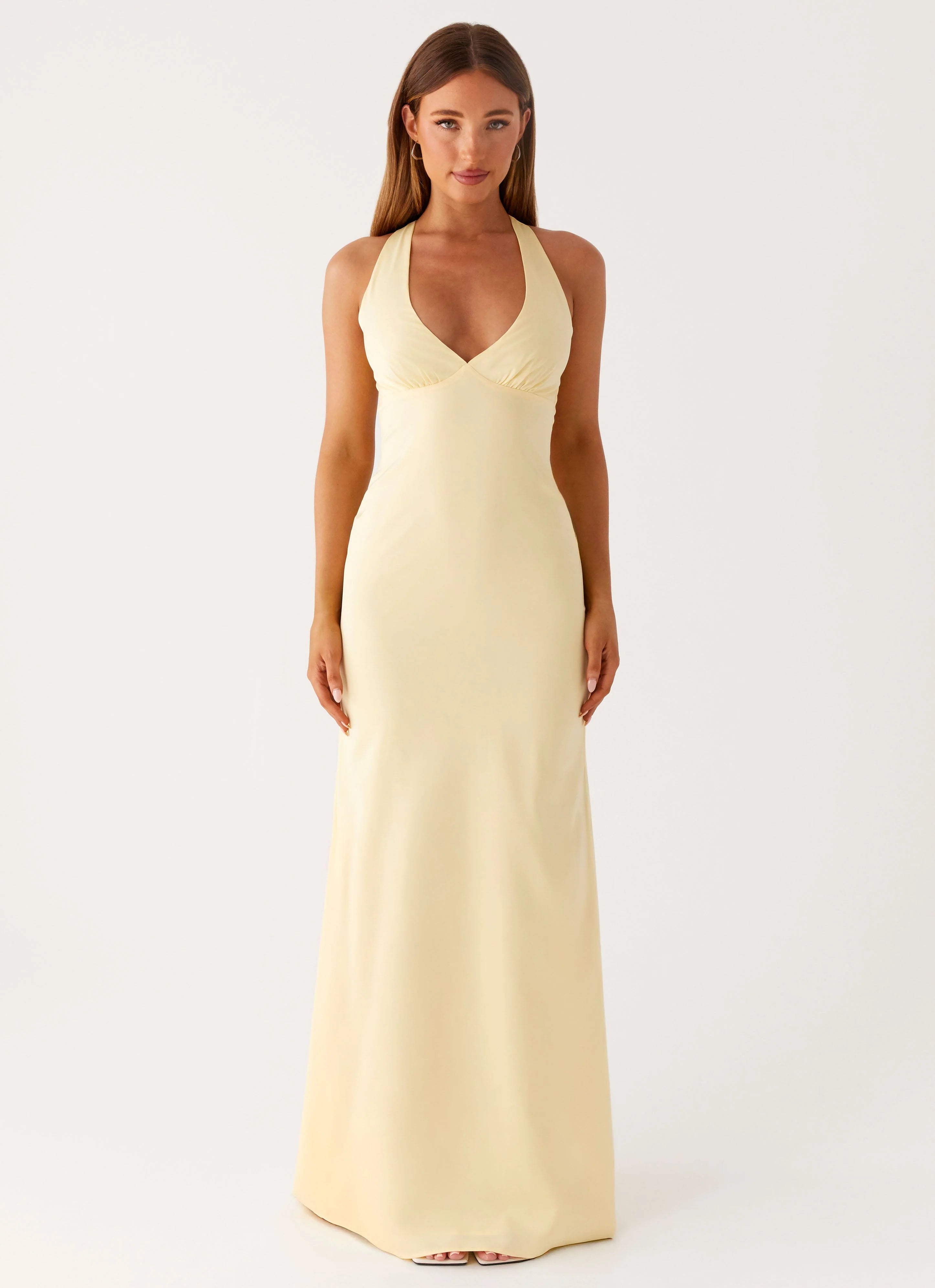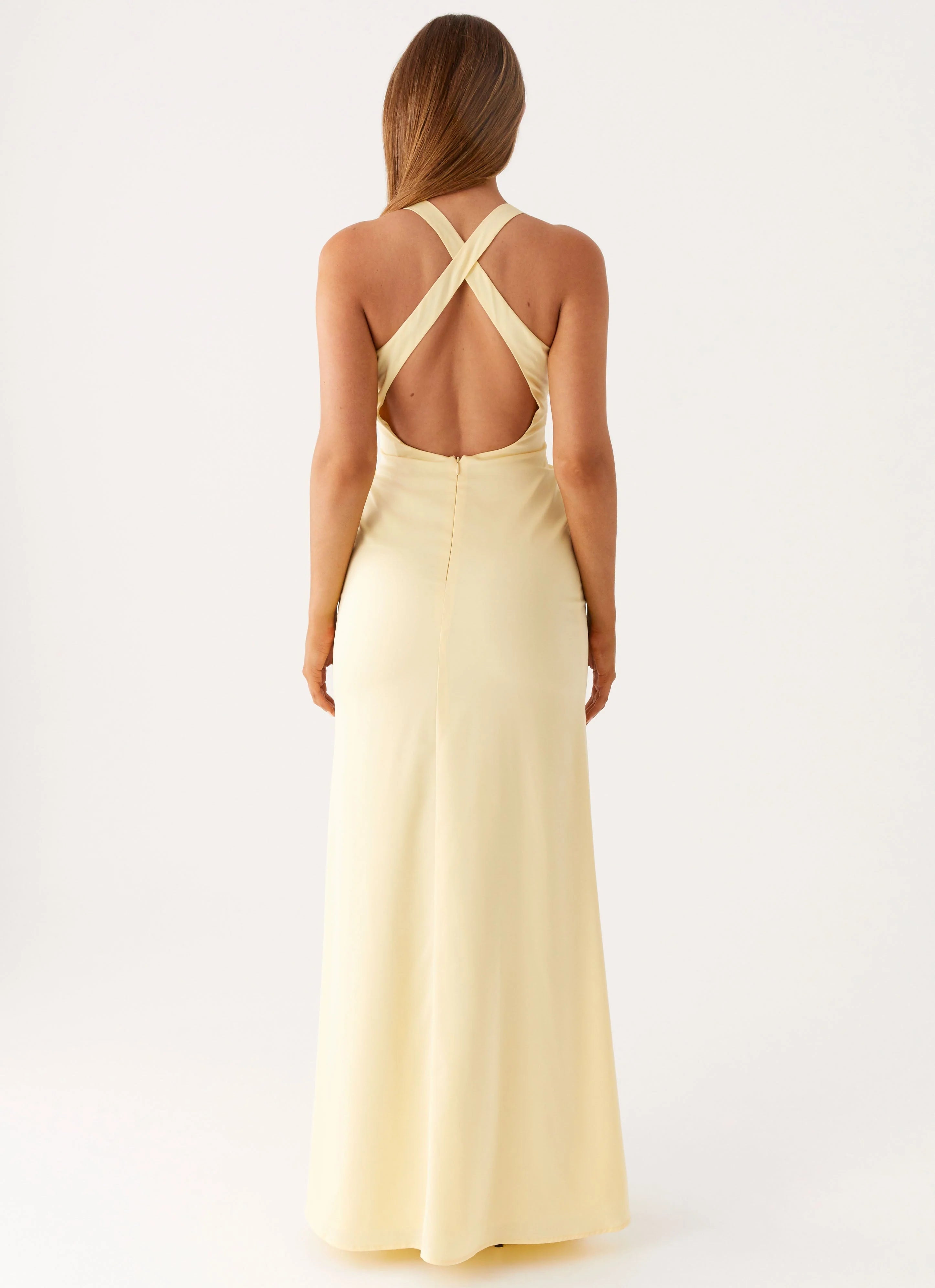 The Desi Halterneck Maxi Dress is made for nights that glow. Featuring a low V neckline with thick straps and ruched underbust, this maxi dress has criss-cross back straps and a fully lined silhouette with side hook and eye and invisible zipper closure.