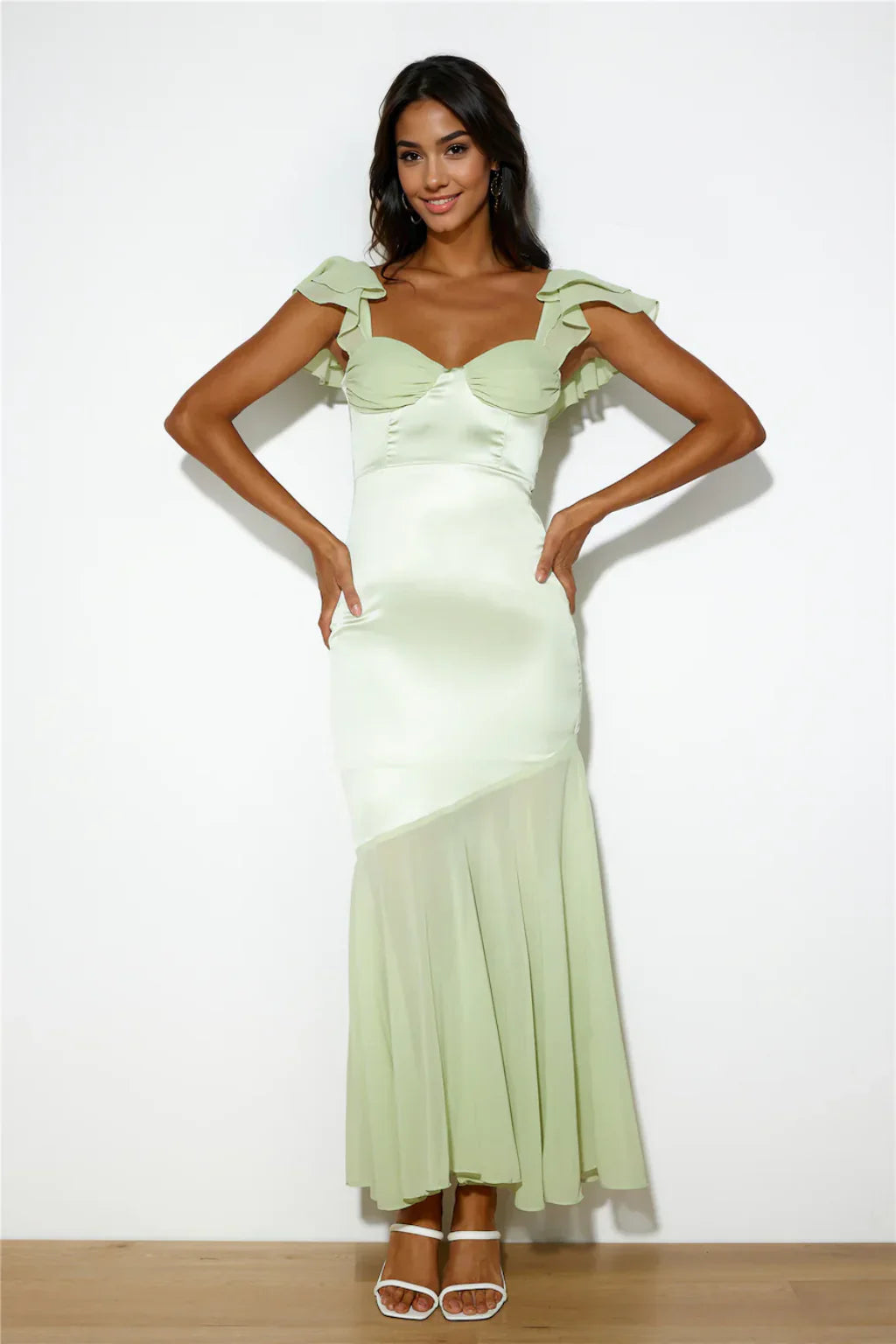 You'll have all attention on you, girl. The Dreamy 'Fit Maxi Dress features flowy skirt and frill sleeves. Style with heels and look gorg.?
