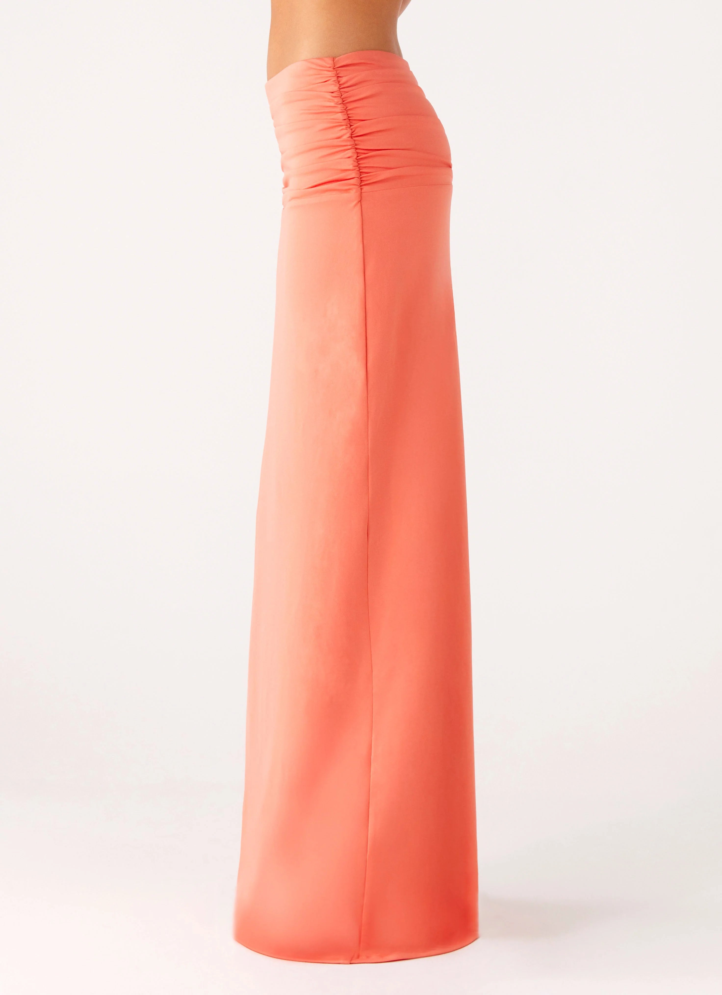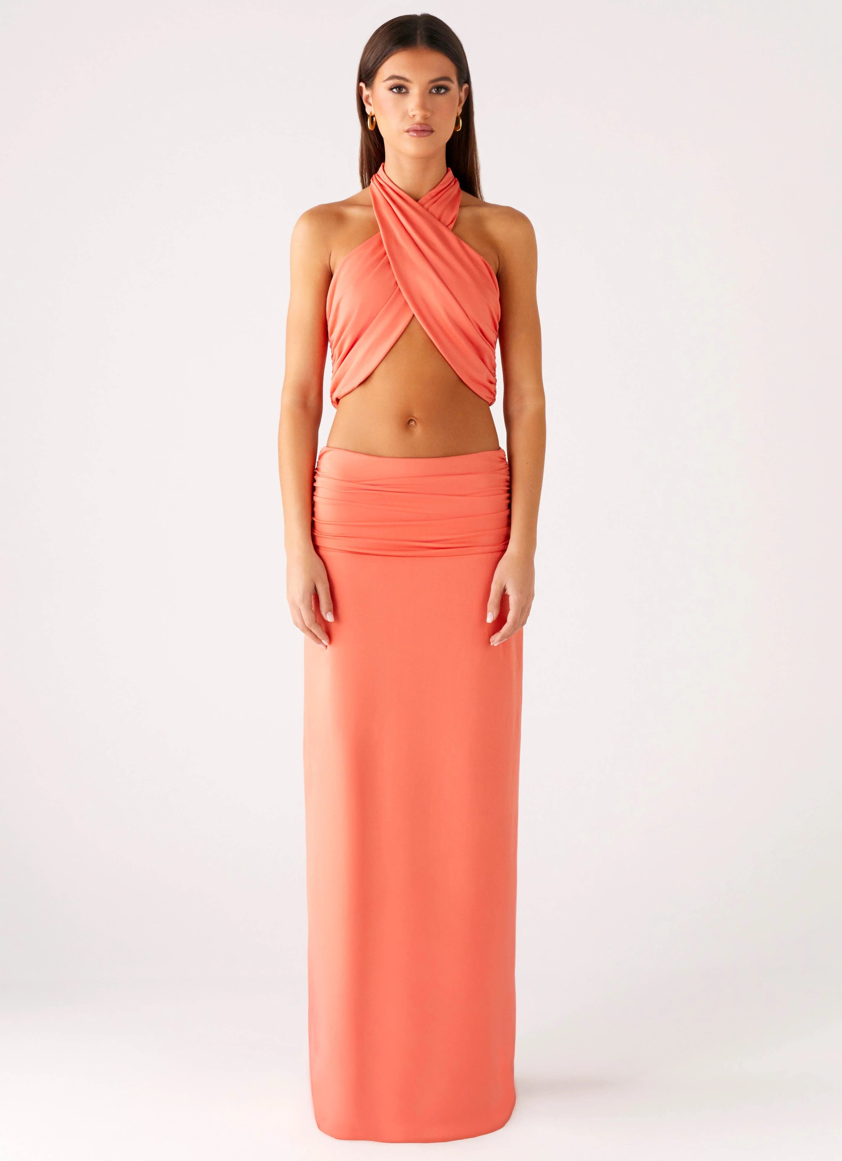 The Elisabetta Maxi Skirt is made for balmy nights and golden hour strolls. Featuring a low-rise fit with a ruched side waistband and an elasticated waist, this maxi-length skirt is crafted from stretch jersey and fully lined for effortless comfort. Perfectly paired with the matching top, it moves with you from sunset to sundown.