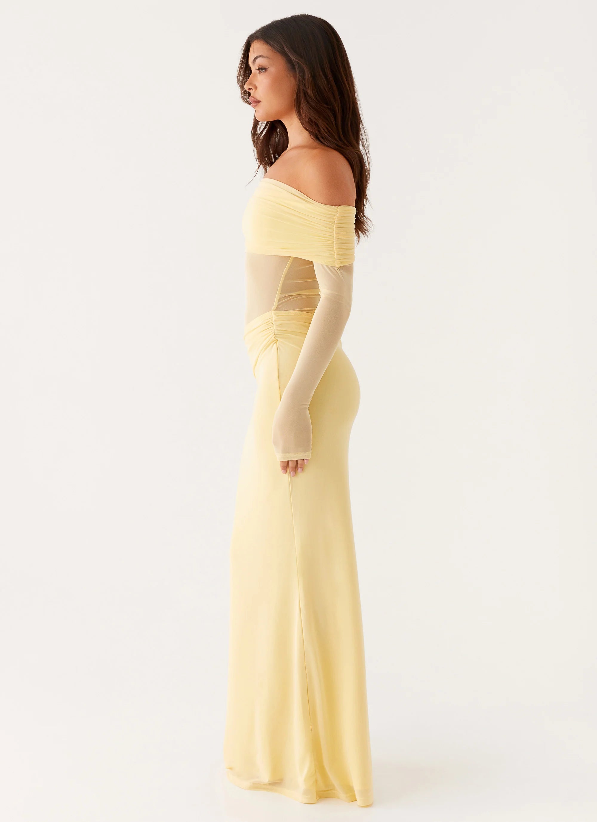 The Emery Maxi Dress is bold and sultry. Featuring an off-shoulder neckline and side cutouts that add a daring touch, this dress is crafted from stretch mesh for a sleek, figure-flattering fit. Perfect for golden-hour moments and late-night adventures, it’s a statement piece that radiates confidence.