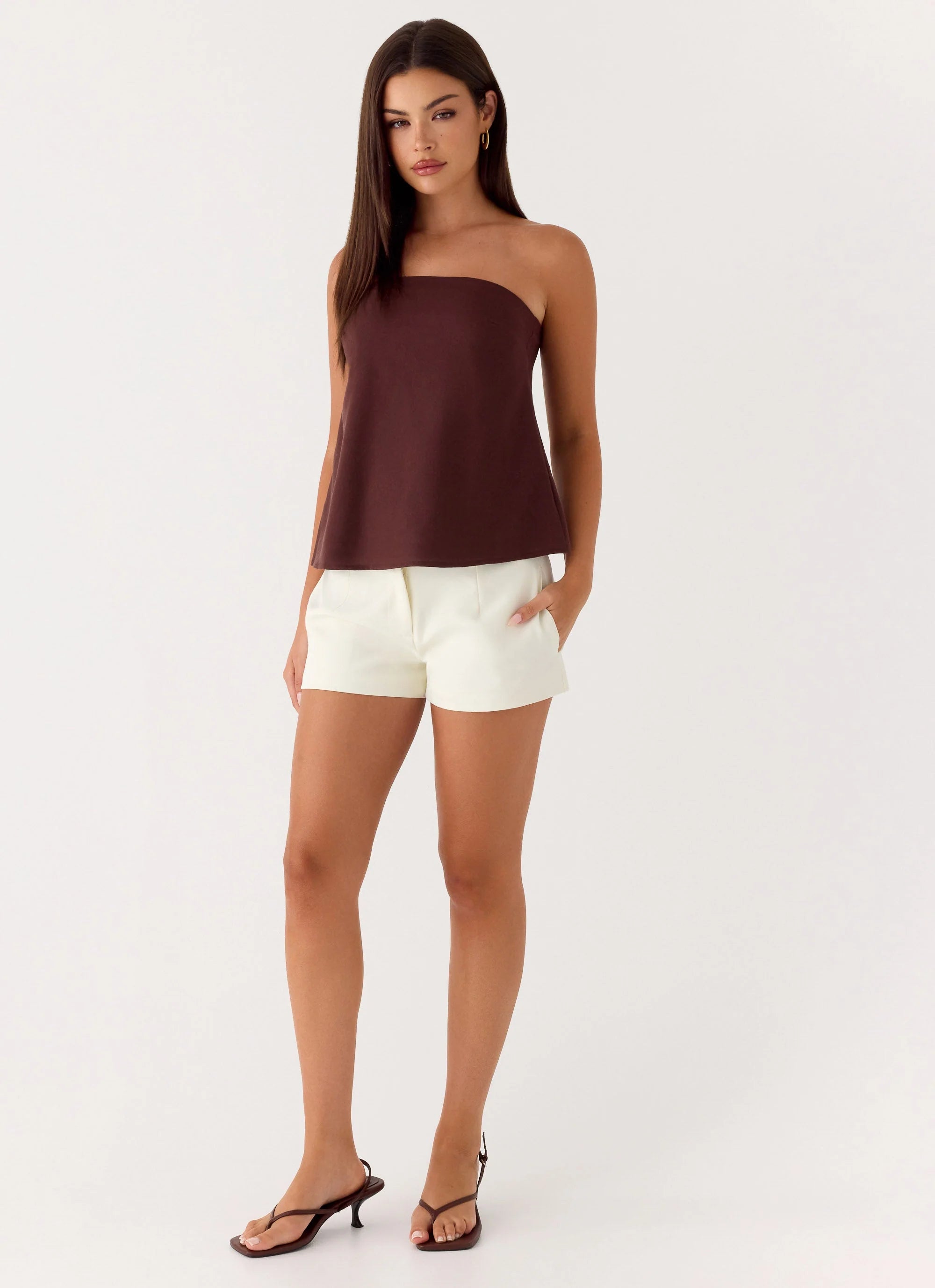 A chic strapless top crafted from a breathable cotton-linen blend. Designed with a clean strapless neckline, fully lined for comfort, and finished with a side invisible zipper for a sleek fit.