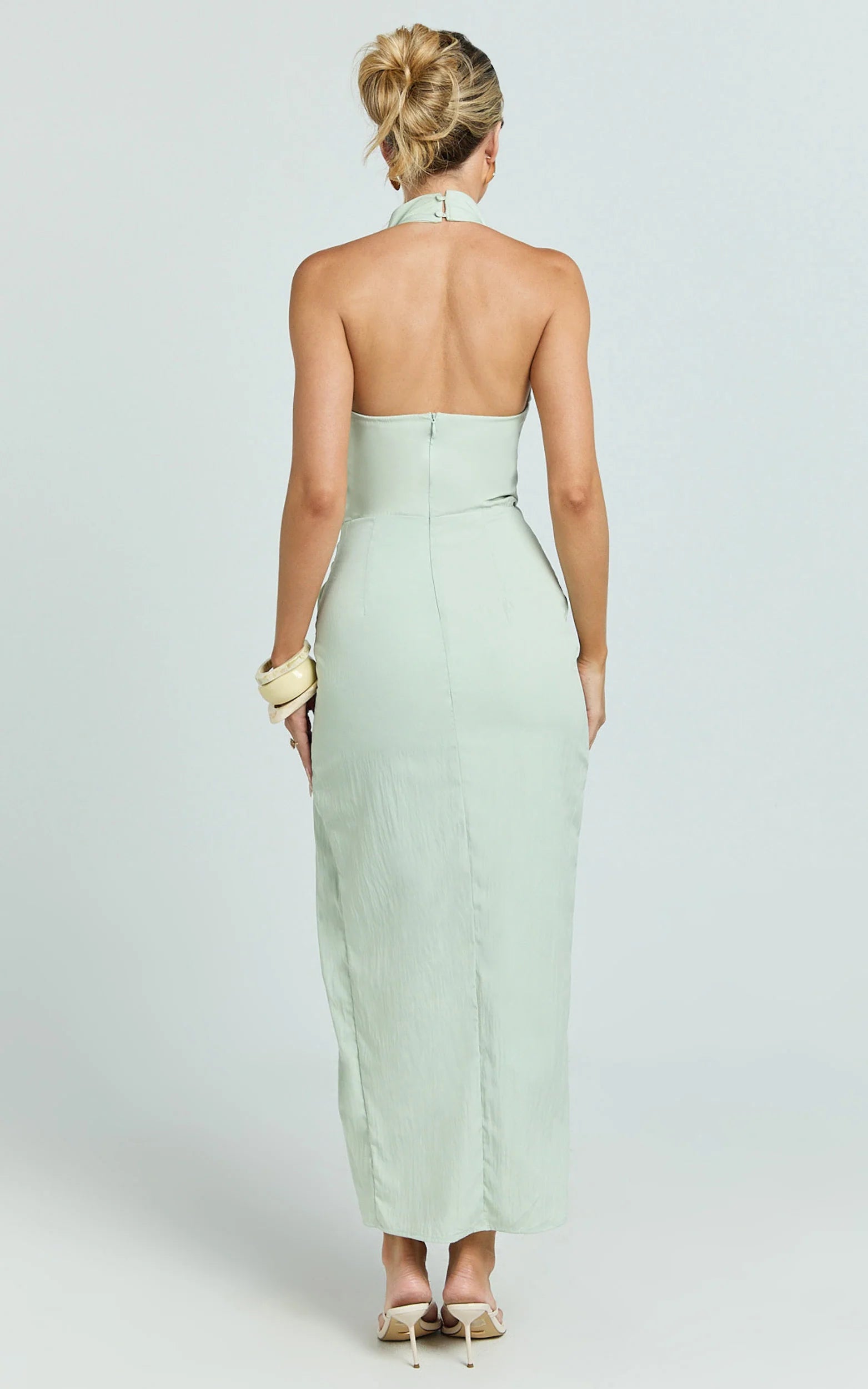Slip into the Finn Midi Dress - Folded Cowl Halter With Front Leg Split In Sage when the plan calls for polished allure. The midi length balances the sultry neckline and split, making it a go-to for weddings, cocktail hours and date nights. It’s one of those dresses you’ll reach for whenever you want effort with impact.