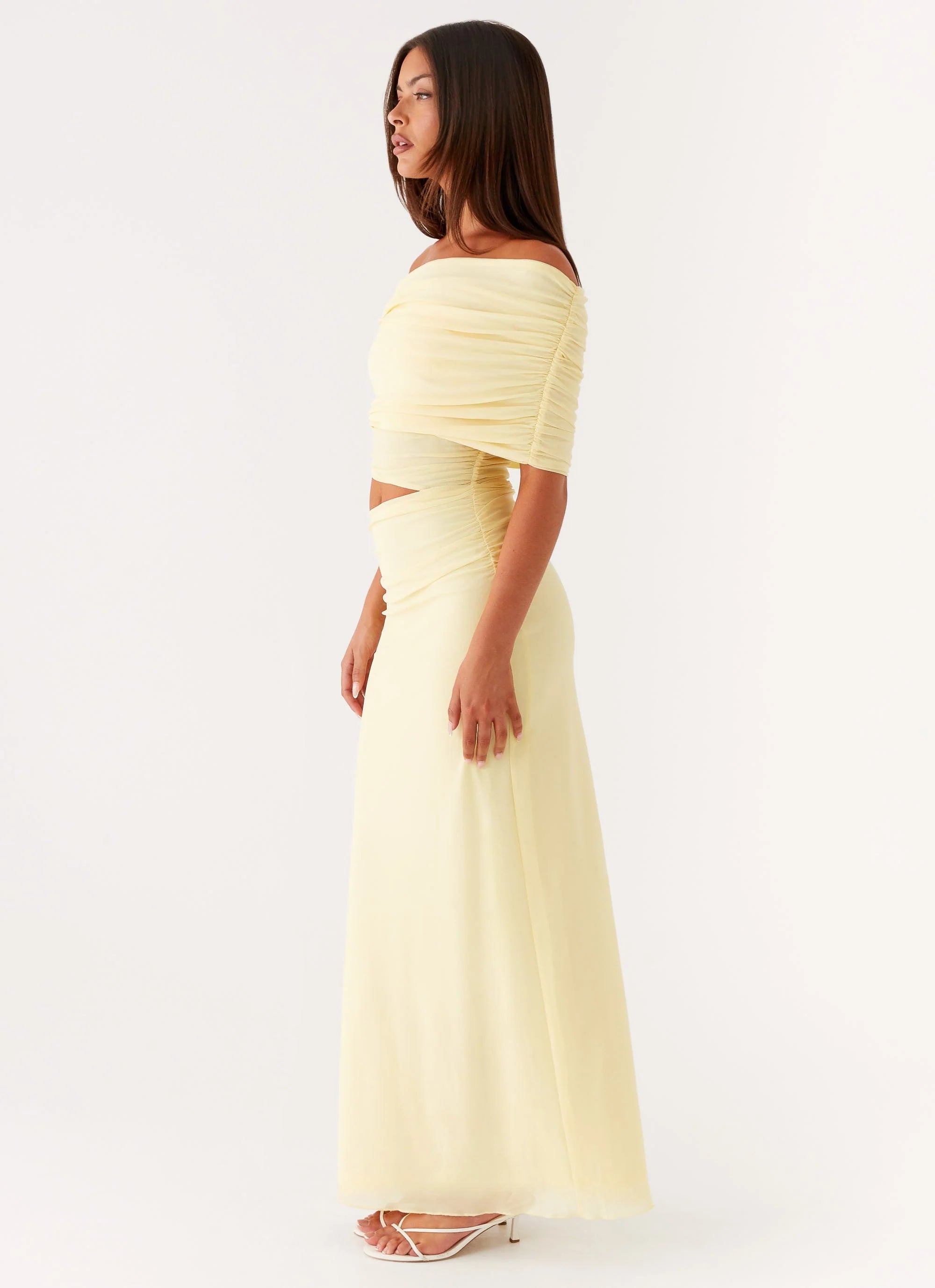 The Gillian Maxi Dress is sleek and striking, designed to turn heads. Featuring a one-shoulder neckline and a daring lower stomach hip cutout, it blends bold details with a sophisticated silhouette.