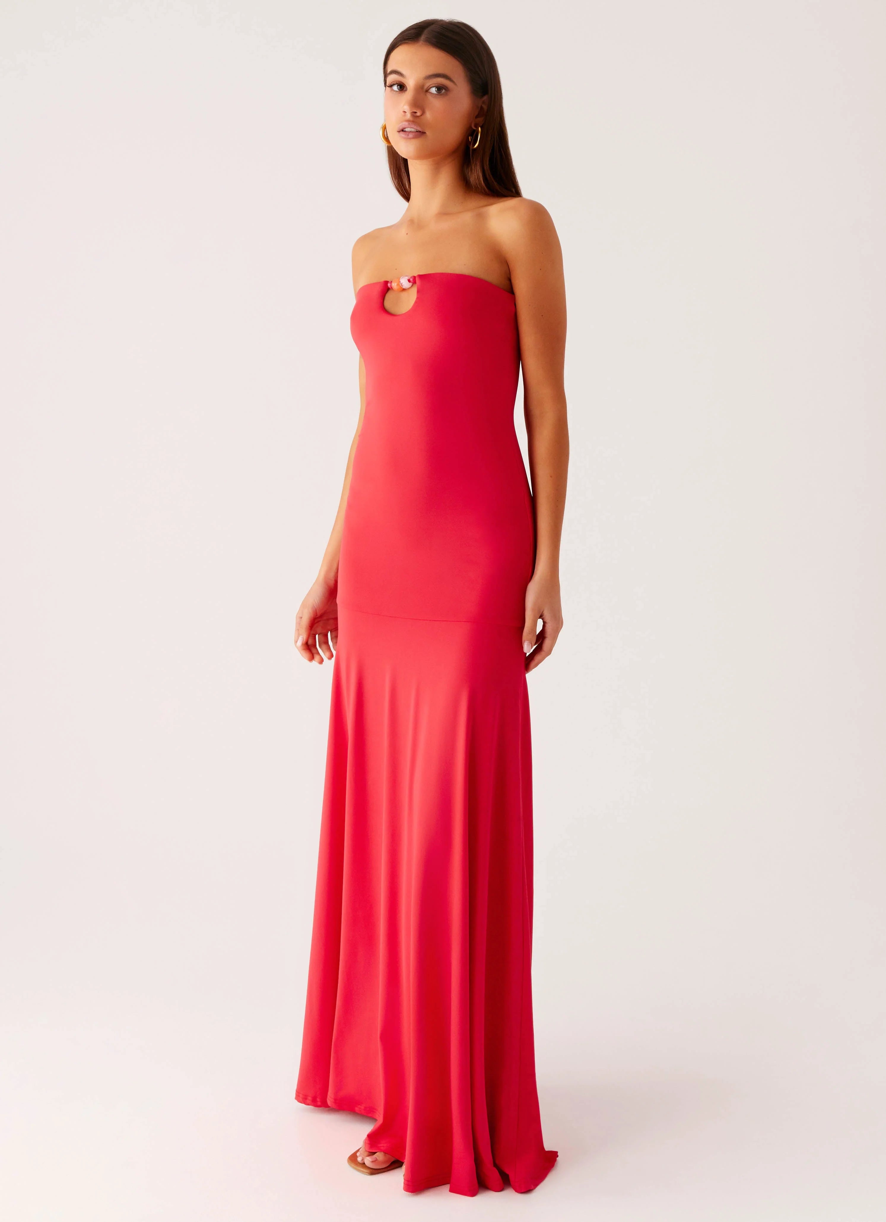 The Hurts Like Hell Maxi Dress commands the night with its bodycon silhouette and bold details. Crafted from stretch jersey with elasticated silicone tape for support, this maxi-length dress features a front keyhole cutout that adds just the right touch of intrigue for after-dark moments.