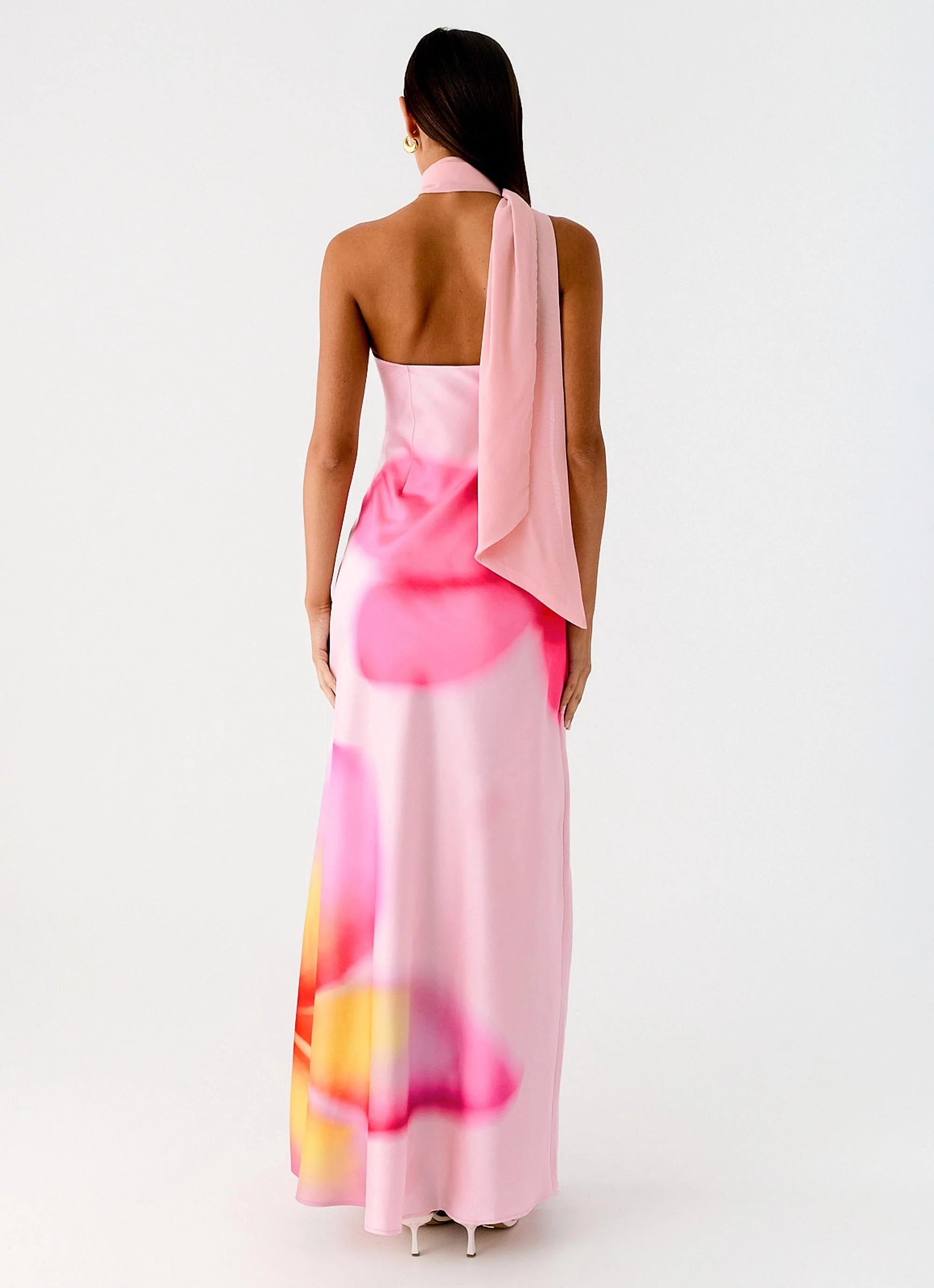 The Isa Scarf Satin Maxi Dress is made for nights that flow into sunrise. Designed in a silky satin with an exclusive print, it features a scarf-inspired neckline with elasticated silicone taping and flattering side ruching to highlight your shape. Fully lined for comfort, this maxi silhouette moves with effortless elegance from sunset to after dark.