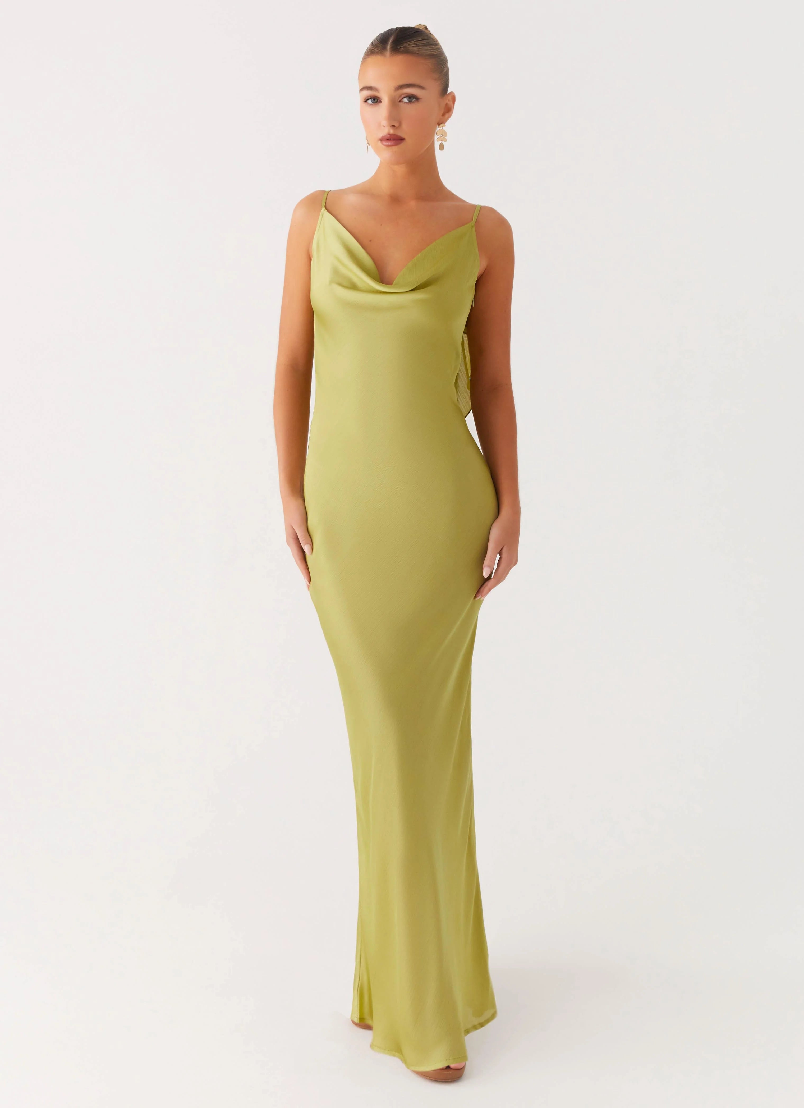 The Jade Escape Maxi Dress captures the magic of sunset soirées with its flowing silhouette and elegant details. Featuring a front cowl neckline and a ruffled back neckline, this fully lined dress drapes beautifully for effortless night-time glamour. It’s made to move with you from golden skies to neon lights.