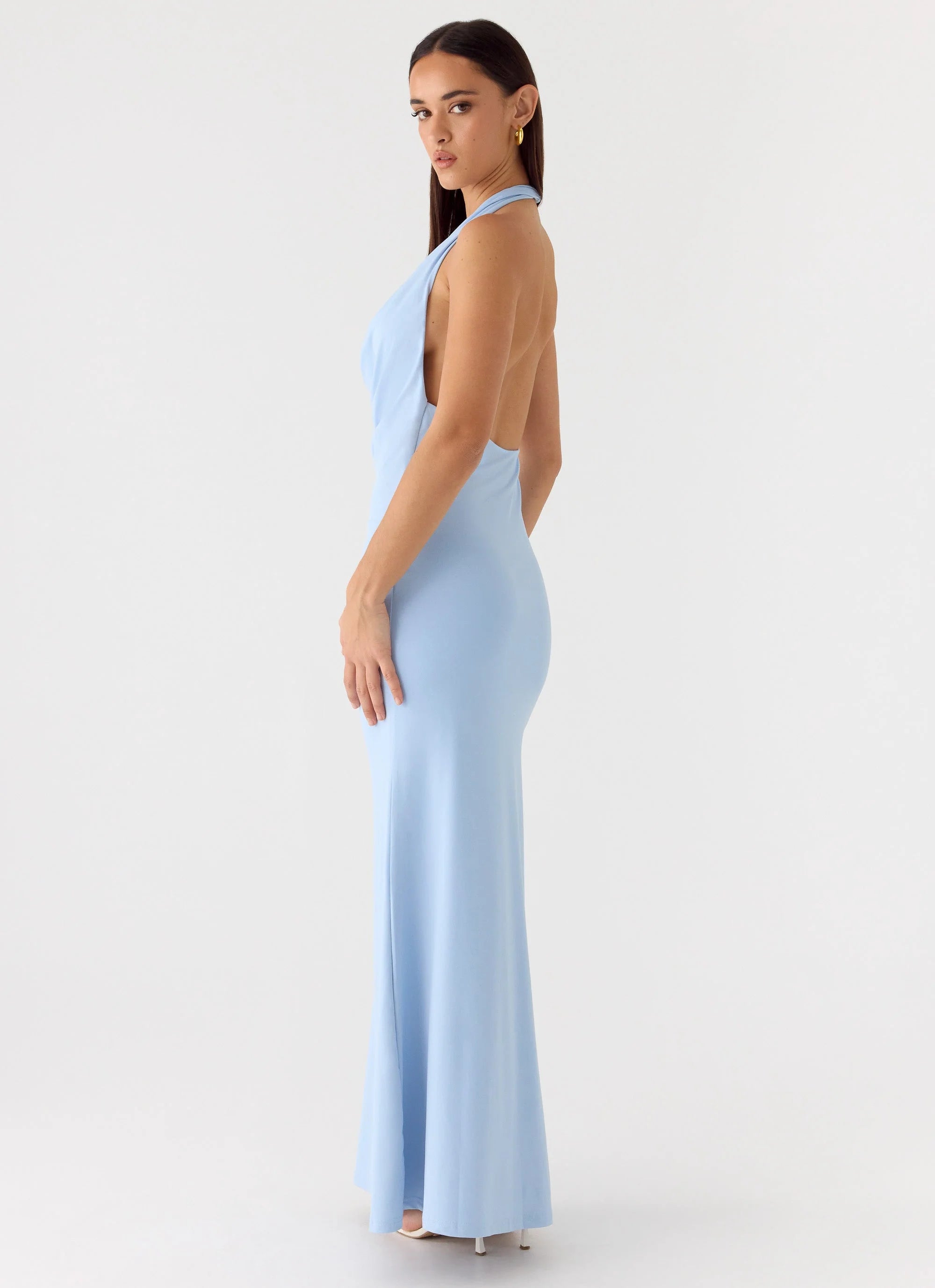 The Jonna Maxi Dress is made for golden hour moments that glide effortlessly into the night. Featuring a low cowl neckline and low back, it drapes elegantly over the body while a gold embellishment adds a touch of luxe. Crafted in stretch jersey with a fully lined finish, it moves with ease for a flattering, editorial silhouette.