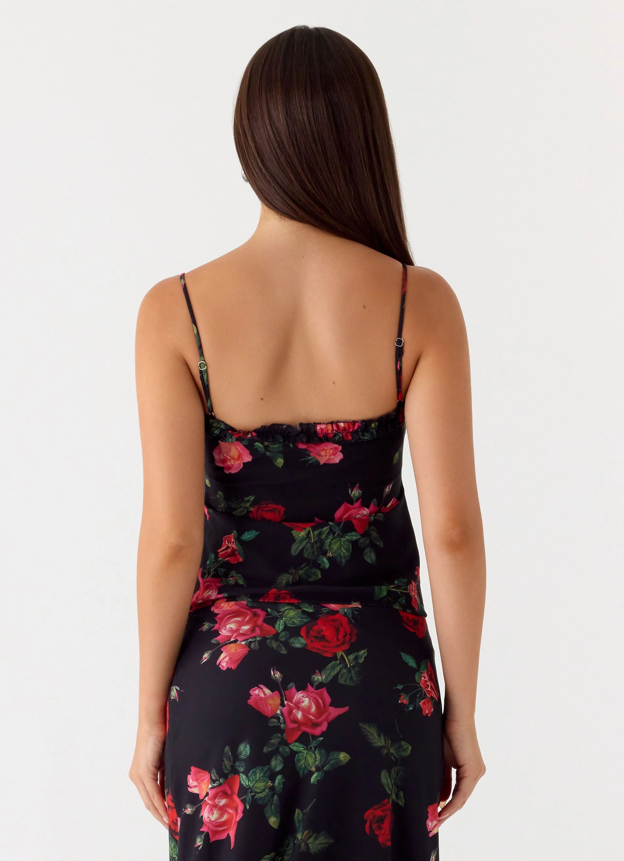 The Kahlo Top is made for evenings that shimmer with effortless style. Featuring a square neckline, delicate ruffle detailing, and a bias-cut silhouette, it flatters the body with a feminine, structured fit. Finished with thin adjustable straps and an exclusive print, this piece exudes confident, after-dark appeal.