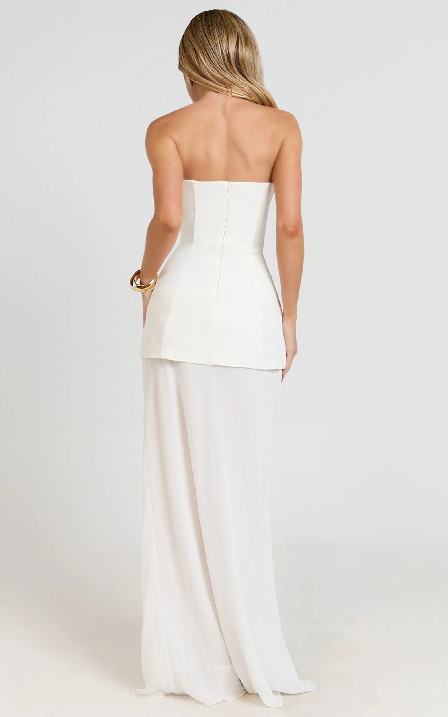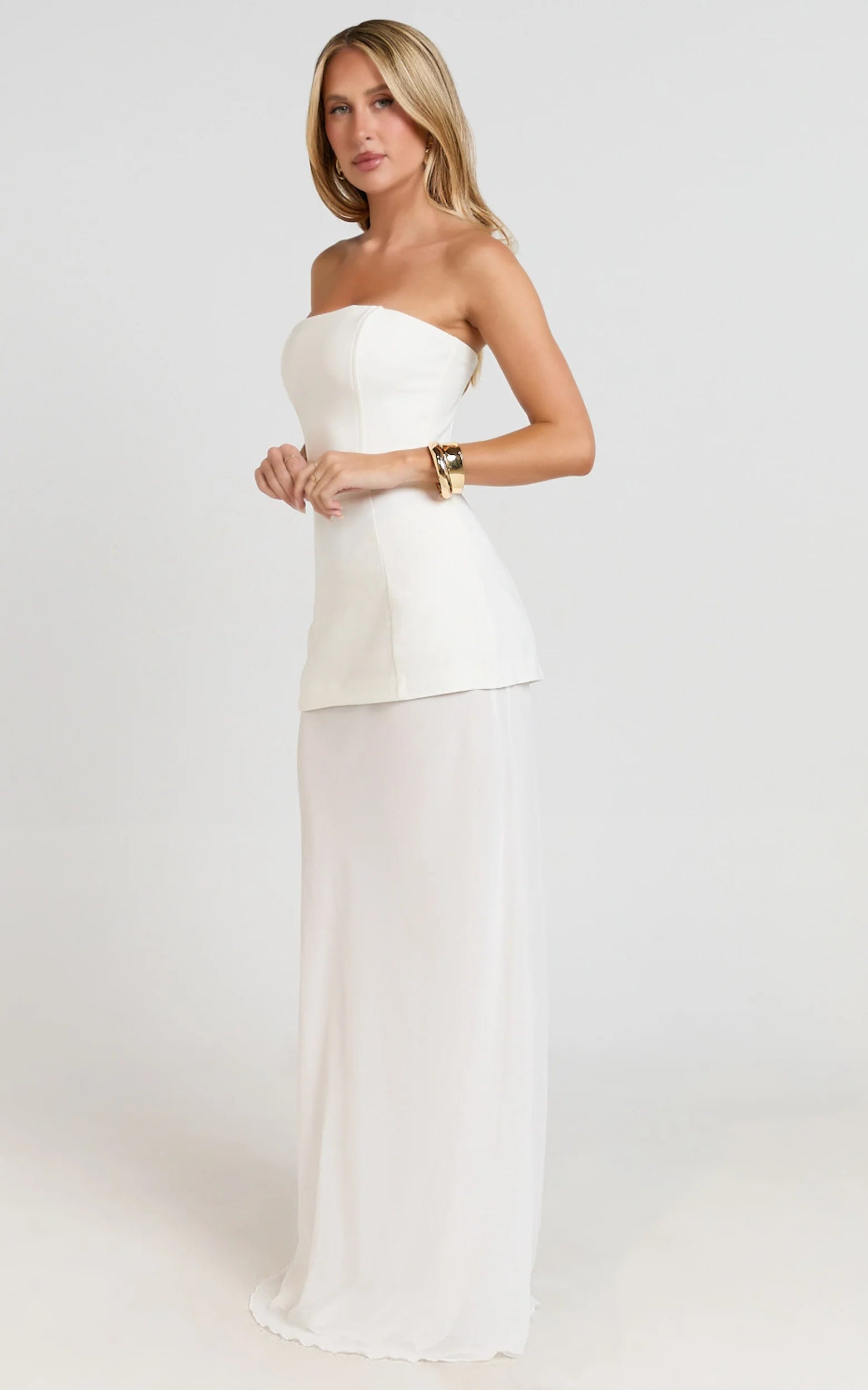Meet Keyla Maxi Dress - Strapless Contrast Skirt Dress In Ivory, your new go-to in Dresses for statement-making elegance. Style it with strappy sandals for a polished finish and add a touch of lace-inspired accessories for on-trend texture. Elevated yet easy, it nails that crisp, fresh look that’s trending now.