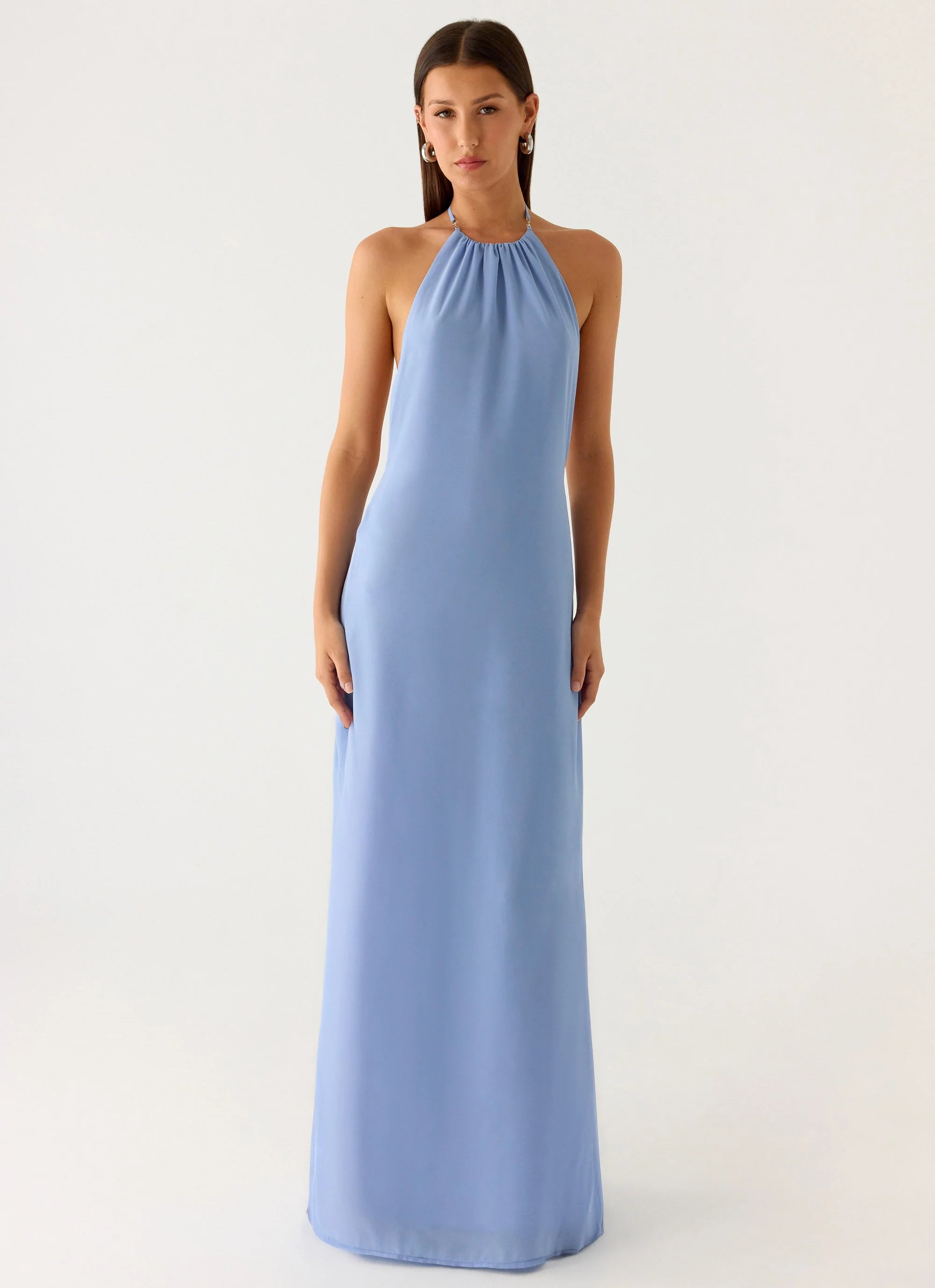 The Le Soleil Halter Maxi Dress is made for long summer nights and glowing entrances. Featuring a fluid maxi silhouette with a delicate halter neckline, this style is elevated with a beaded strap that catches the light with every move. The low back and fully lined finish create a smooth, effortless drape — perfect for slipping from sunset to after-dark plans.