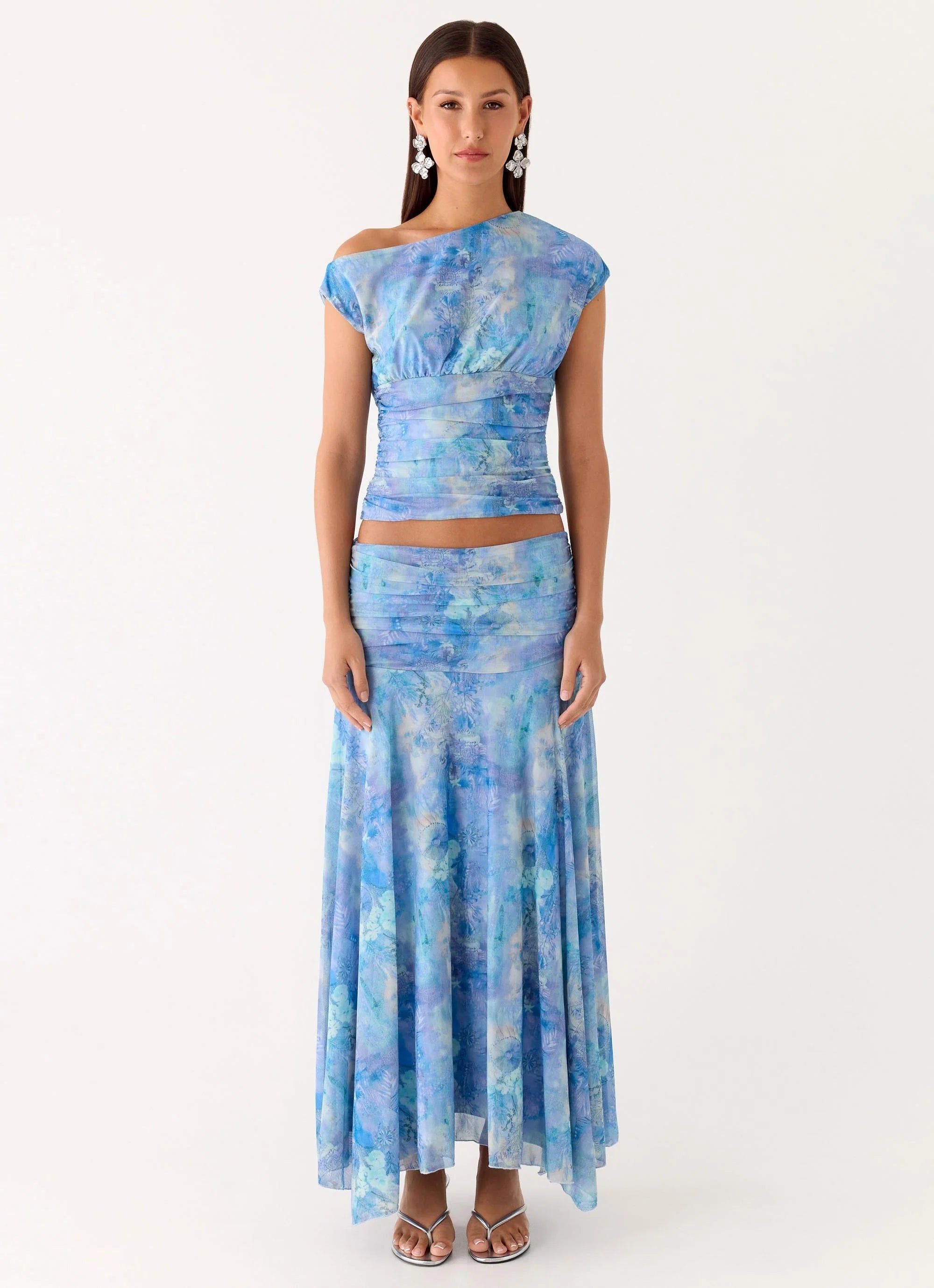 Liana Asymmetrical Top featuring an asymmetrical neckline and ruched waist. Designed for a sleek, sculpted fit, this statement top brings effortless edge to any after-dark ensemble.
