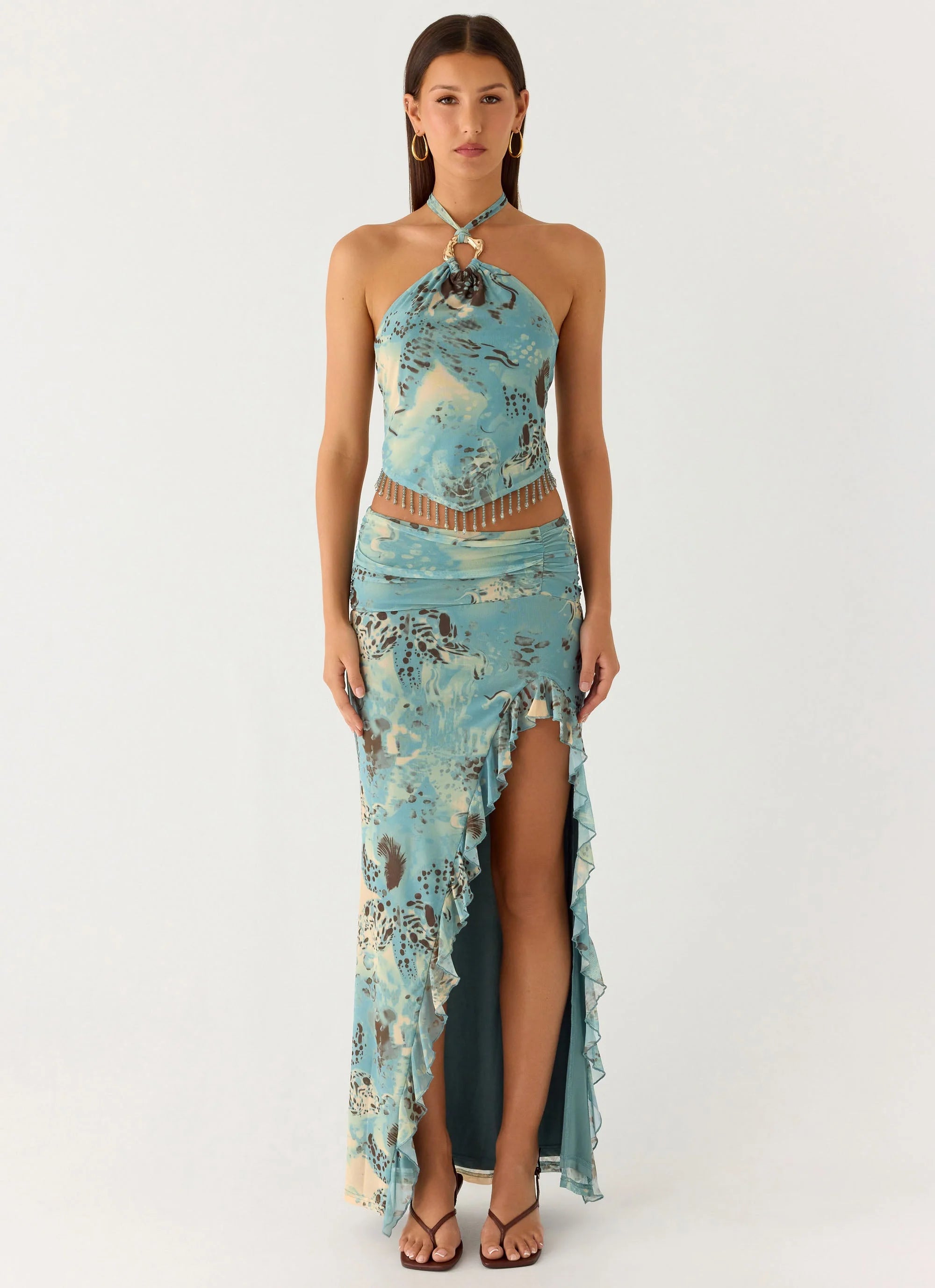 The Lloyd Beaded Halter Top is a statement piece designed to shine from golden hour to after dark. With its luxe embellishments and bold print, it’s the perfect blend of playful and opulent.