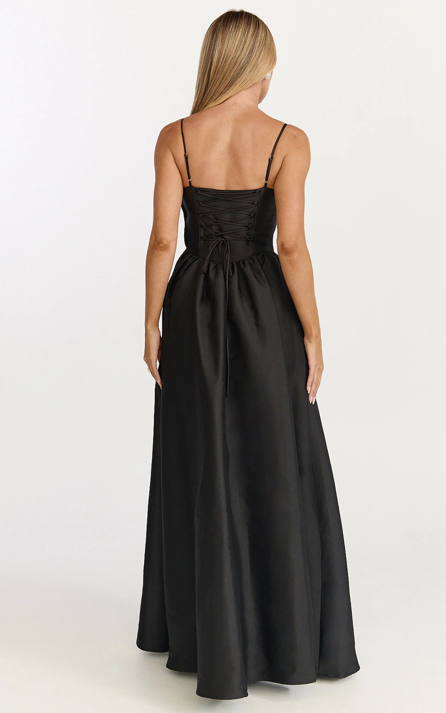 This maxi is all about confidence with a boned bodice that cinches, a lace-up back that customises your fit, and a sleek silhouette that skims in all the right places. It’s timeless, flattering and made for every body, because our party has room for everyone.