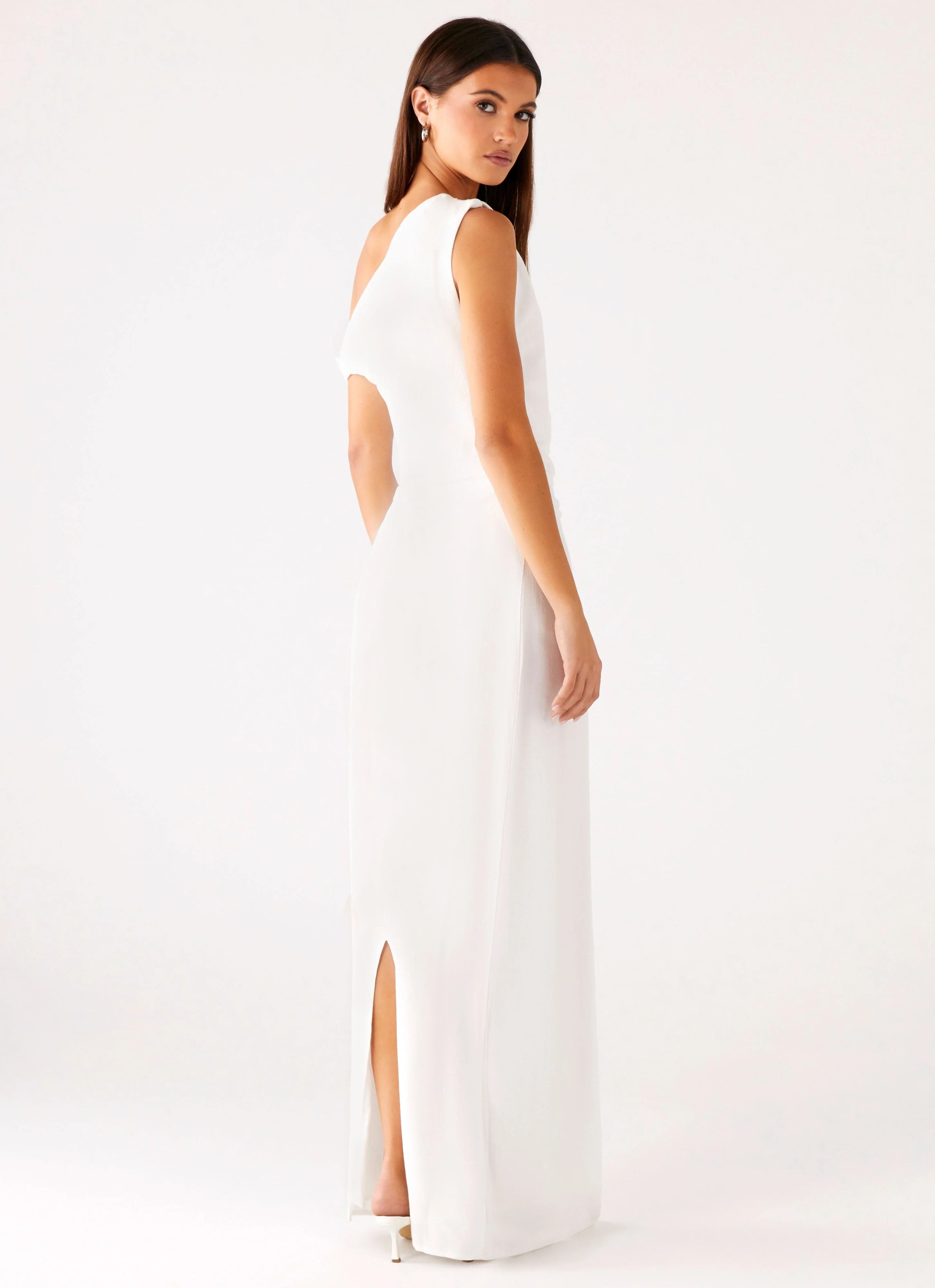 The Mckenna Maxi Dress moves with effortless elegance, featuring an asymmetrical neckline and ruched shoulder seam that catch the light from sunset to sundown. Crafted from a breathable cotton-linen blend and fully lined for comfort, this maxi-length silhouette is designed to flow through balmy nights and city lights.