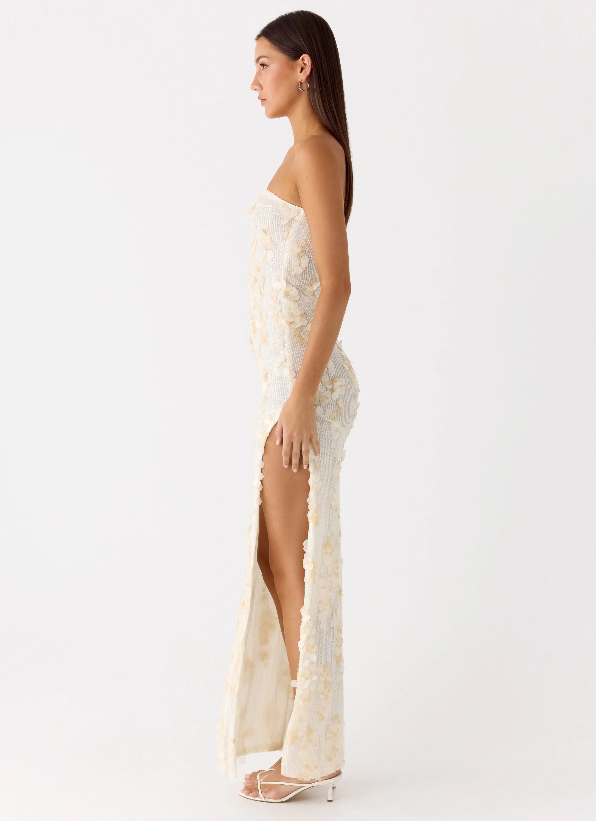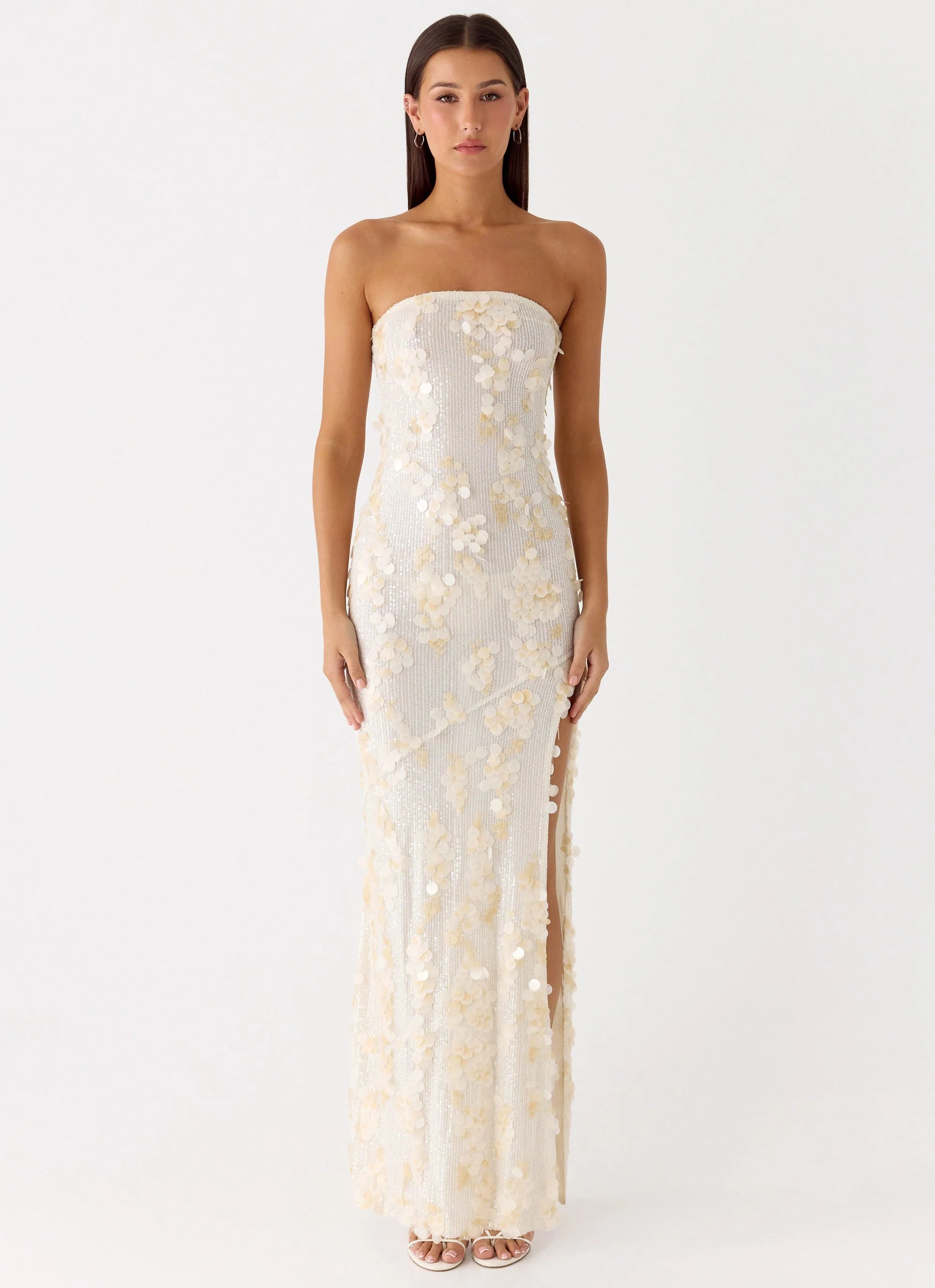 The Minni Sequin Maxi Dress is made to dazzle from sunset to sundown. Featuring a strapless neckline and a body-skimming fit, this fully lined maxi dress is adorned with sequins for effortless sparkle at any event or night out.