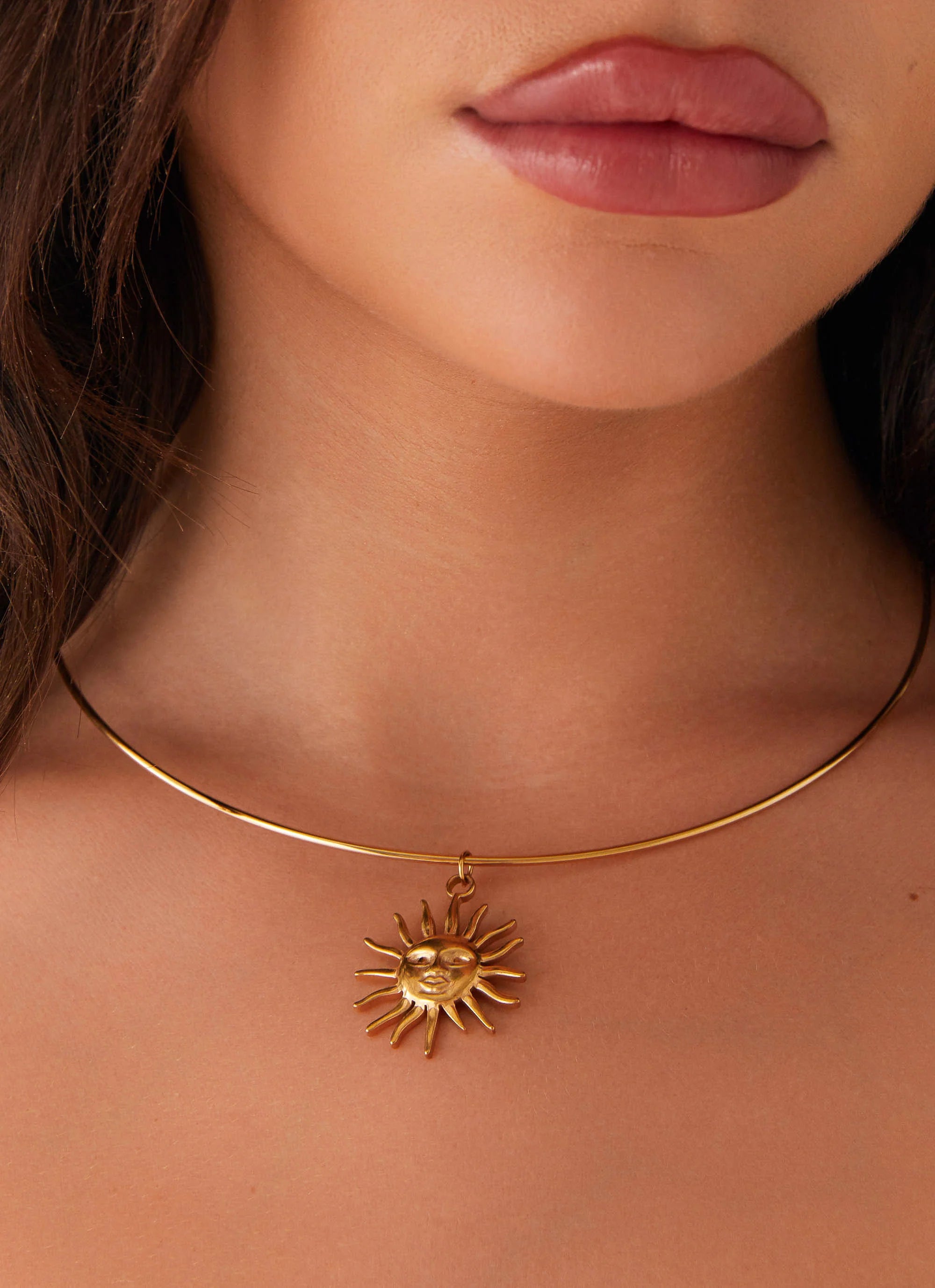 The Nahla Necklace is a statement of sleek sophistication. Featuring gold hardware and a clip closure, it adds a touch of bold elegance to any look, perfect for golden skies and unforgettable moments.