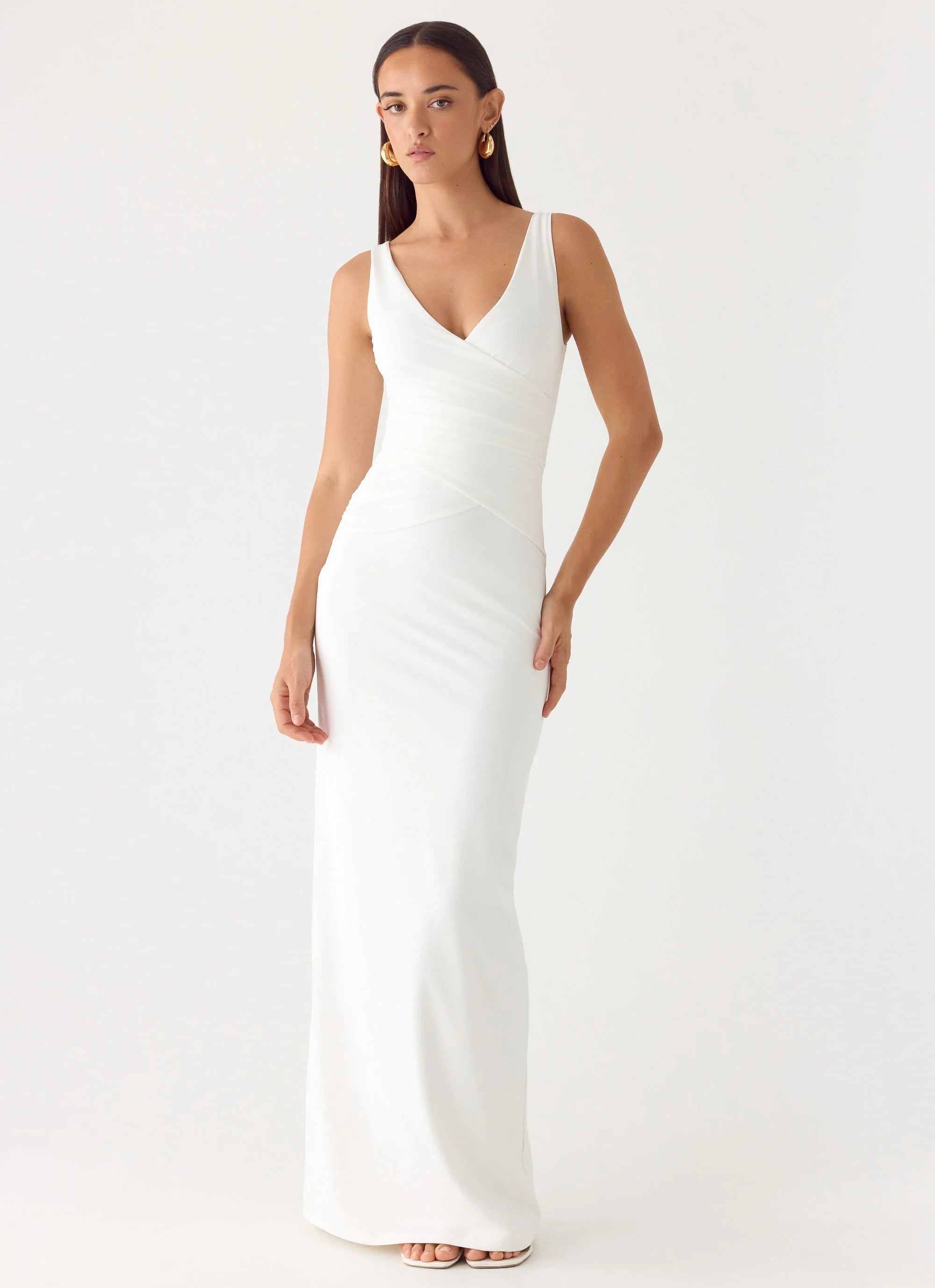 The Nerine Maxi Dress is designed for effortless, sun-to-night elegance with a sleek, flowing silhouette. Featuring a V neckline and wrap waist, this fully lined stretch jersey maxi skims the body for a polished, modern fit. Soft, drapey, and effortlessly chic, it’s perfect for elevated evening moments.