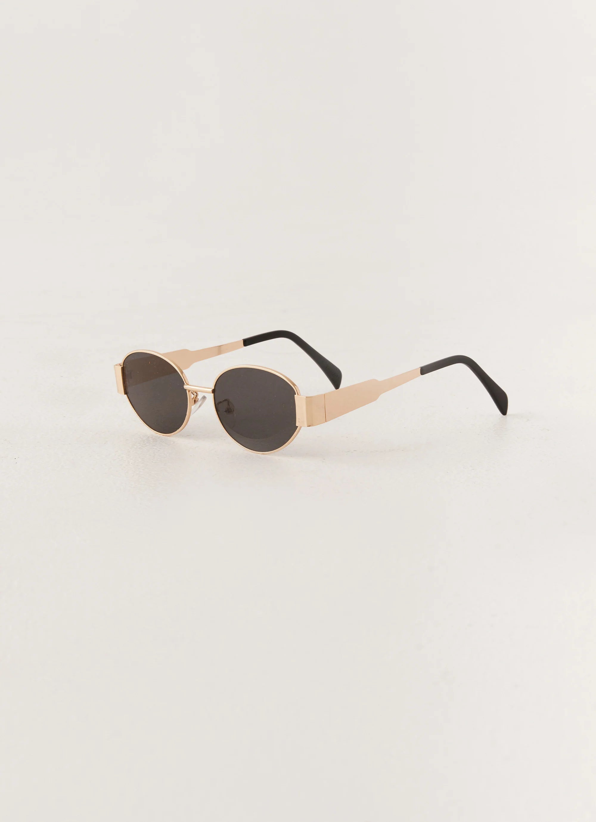 Elevate your accessory game with the Nicole Sunglasses, featuring a sleek oval shape that complements any face. The luxurious gold hardware adds a touch of glamour, while the chic black lenses provide both style and protection from the sun.
