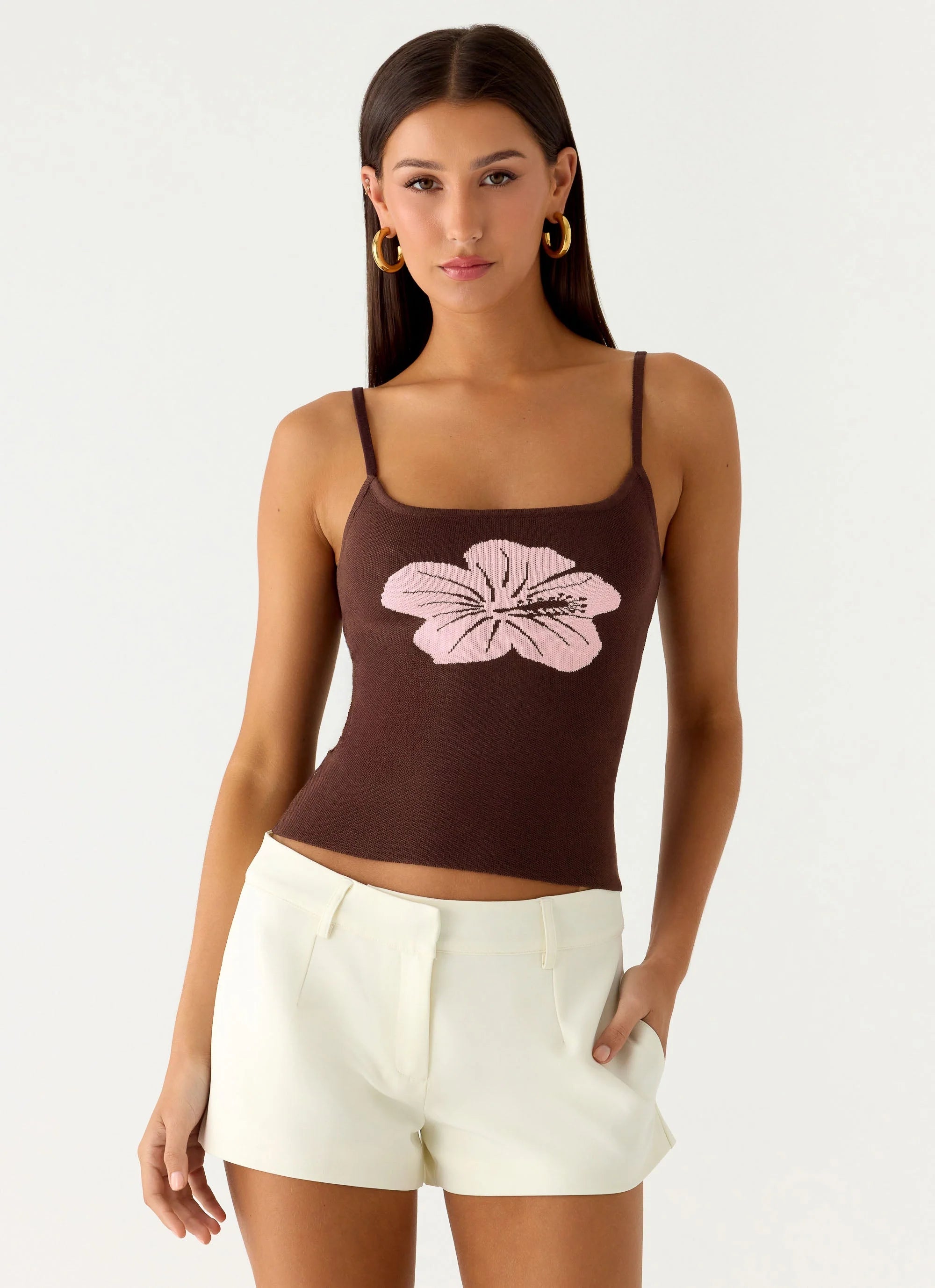 The Ofira Tank is made for golden hours and after-dark adventures. Crafted from soft stretch knit, it features a longline silhouette and bold flower placement — a statement piece for nights that were never meant to be ordinary.
