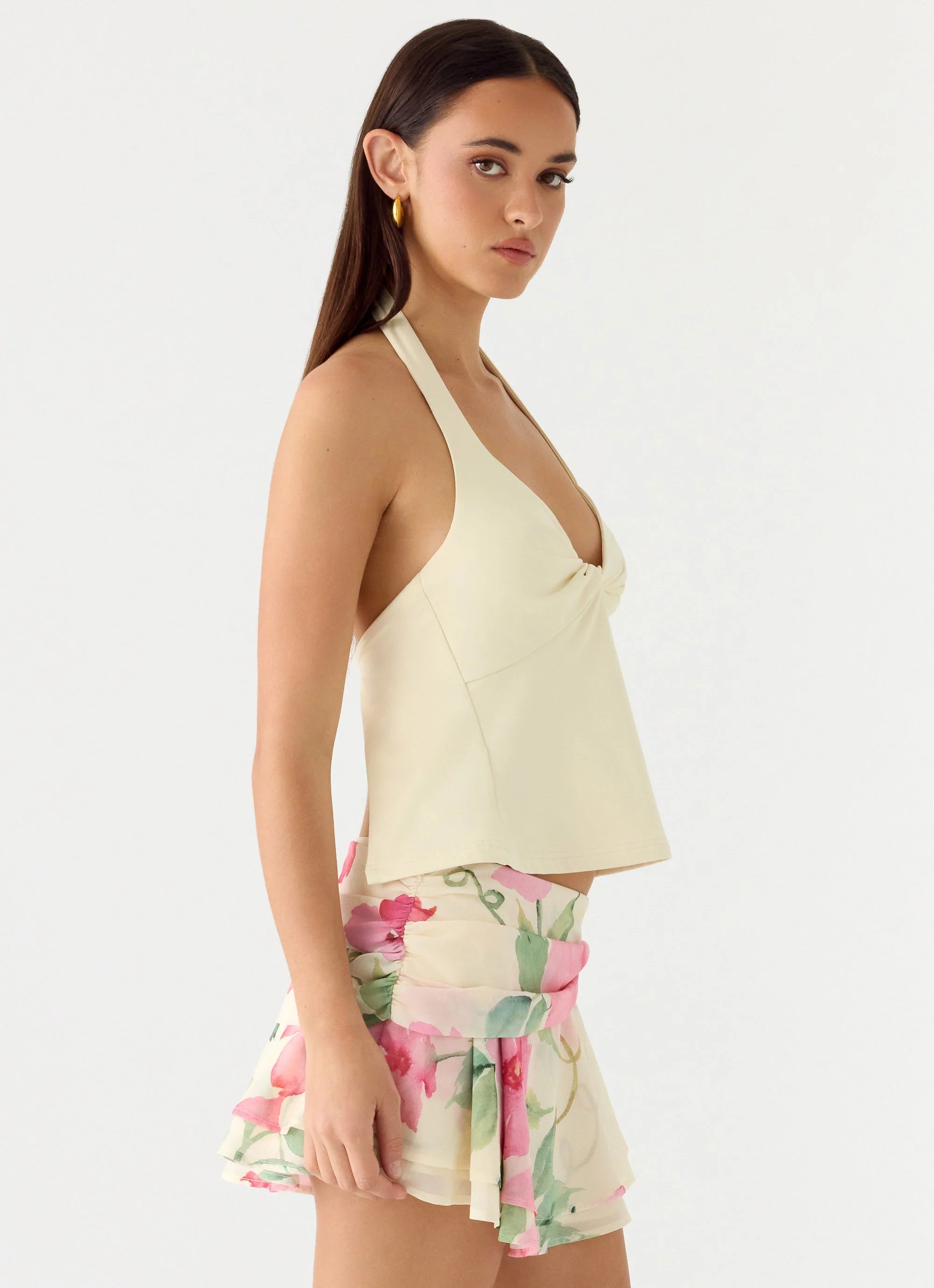 The Parx Top is made for warm nights that call for effortless confidence. Designed with a sleek halter neckline and twist front detailing, this fitted silhouette is crafted in soft jersey for a smooth, body-hugging feel. Fully lined for a polished finish, it’s an easy choice for sunset plans that stretch into the evening.